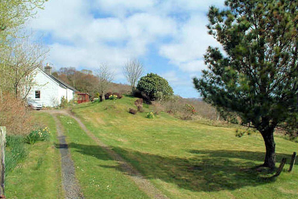 Cove Cottage is a peaceful, single-storey holiday cottage set high on the hills overlooking Loch Caolisport, on the Scottish west coast. It sleeps four guests in two bedrooms and suits couples, families, and dog owners who want space, quiet, and scenery without feeling completely cut off. The cottage sits apart from the rest of the estate, offering a real sense of privacy while still easy to reach by car via a narrow private track. From the house and garden, views stretch across the loch towards rolling hills and distant mountains, and the only regular sounds are wind, birds, and the occasional movement of wildlife. An open fire brings warmth and comfort on cooler evenings, while the all-on-one-level layout keeps everything simple and easy to live in.