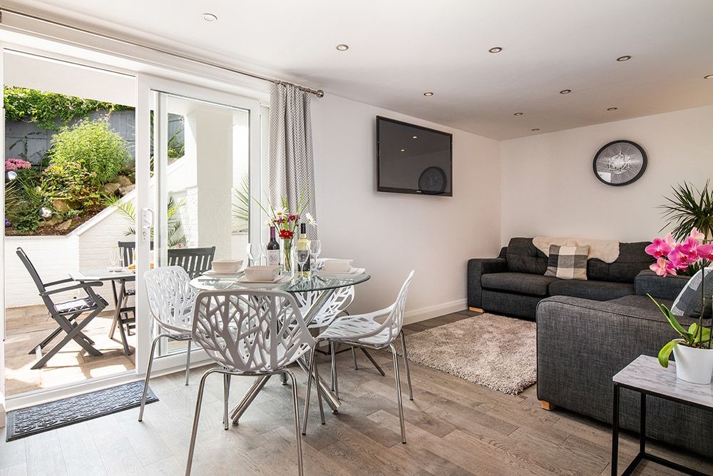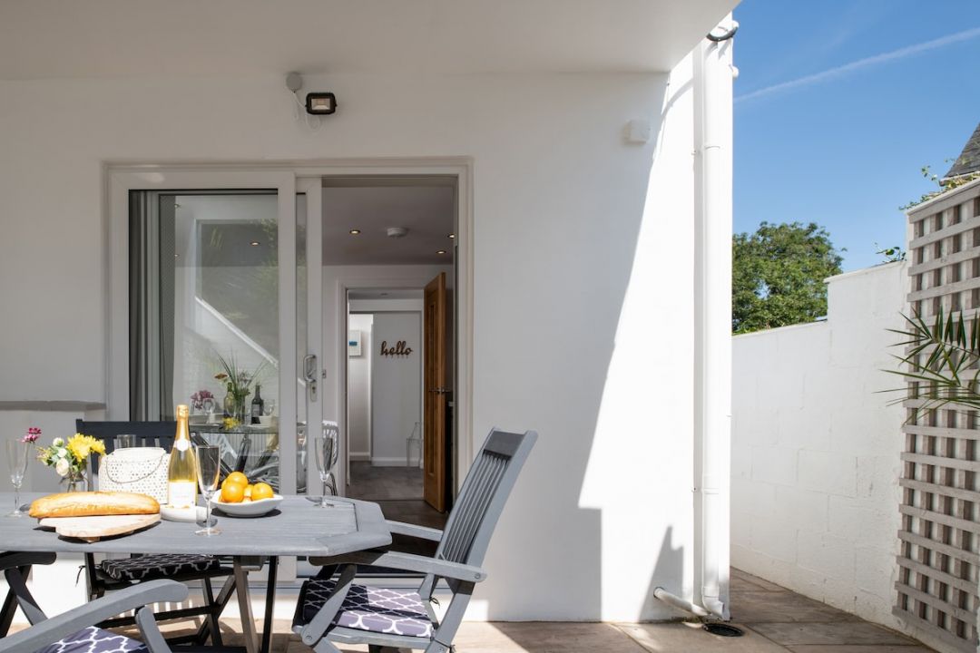 Accommodation Comprises: A light-filled, contemporary ground-floor apartment for 4, completely dog-friendly with a private garden.