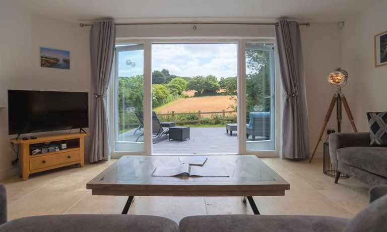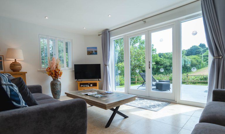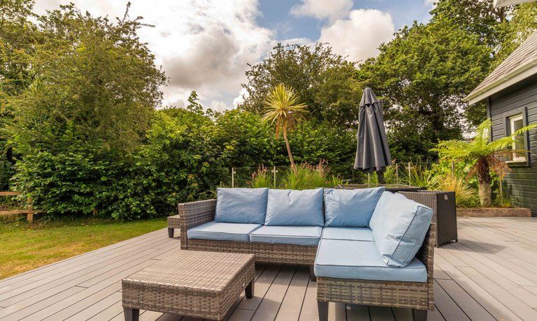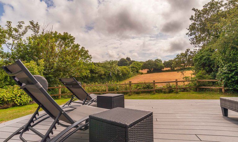 Outside: The Villa has a private deck with seating and landscaped gardens. Guests can roam Trewhiddle Villages' 120 acres which include woodland walks and a children's play area.