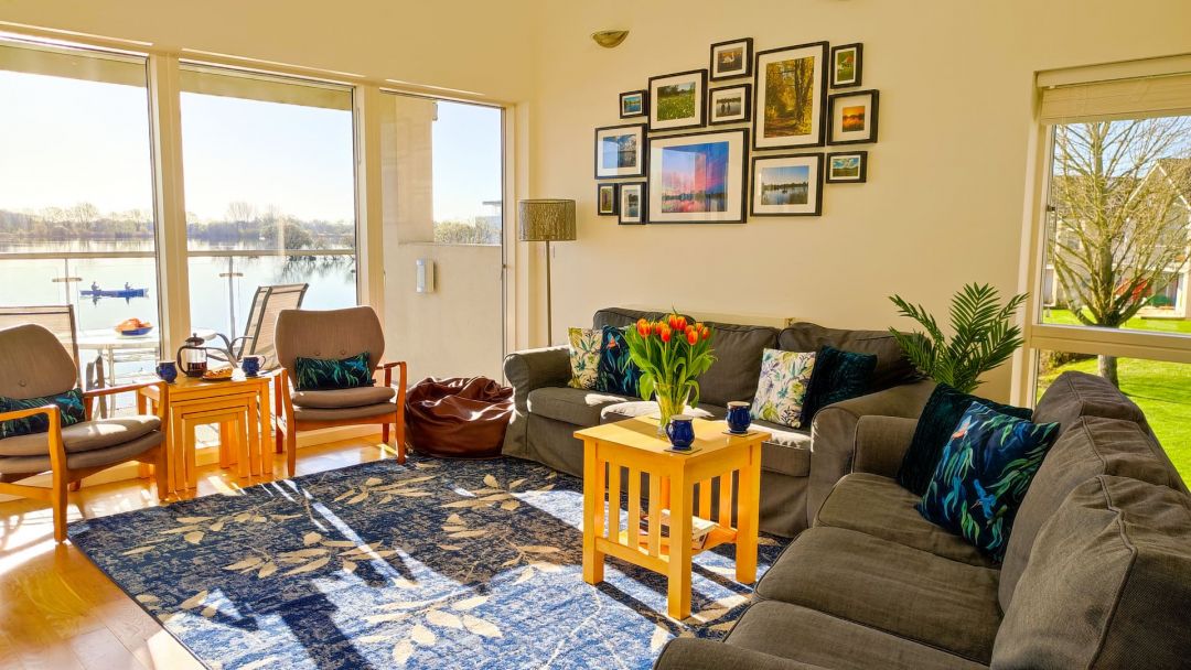The house is modern and spacious. Huge windows showcase the beautiful views of the lake and the upside-down layout makes them easier to enjoy. Accommodation is over three levels.