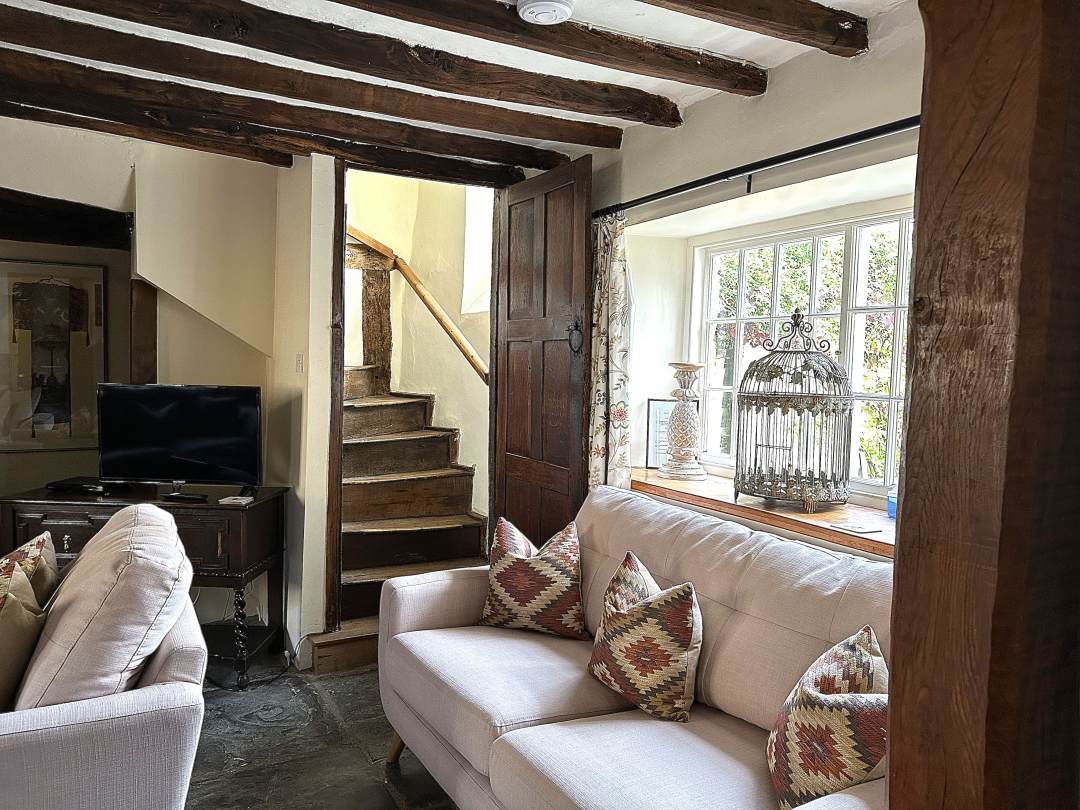 Full of period features and traditional charm, Pitchers House has a fabulous inglenook fireplace housing a log burner in the living room, the original old stone mullions (windows), wooden floor boards, flagged floors and exposed beams.