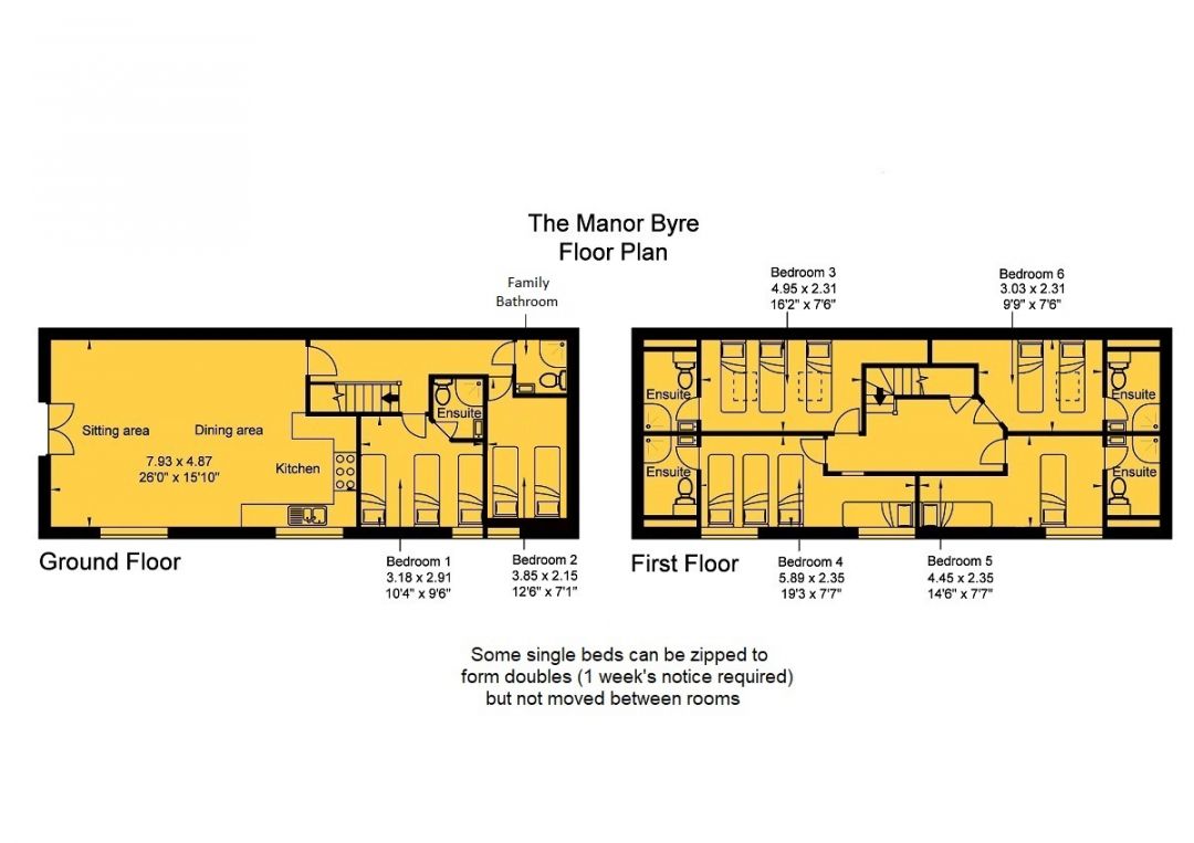 Providing a high standard of comfort with mod-cons including WiFi and an optional hot tub, The Manor Byre offers a social living space with accommodation spread out over two floors. The open-plan living area, two en-suite bedrooms, plus a cloak room are on the ground floor making the property suitable for those who prefer to not climb stairs. Some of the single beds can also be zipped together to become doubles providing extra flexibility.