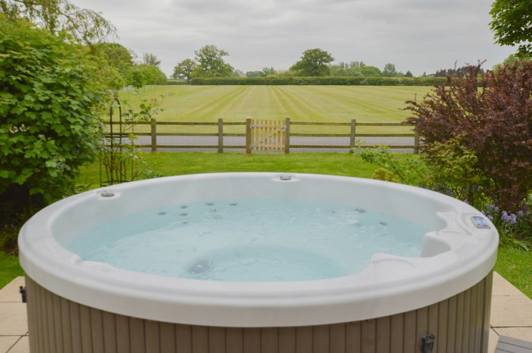 Outside: The Manor Lodge has a private fenced garden. It is flat and mainly lawn with lovely mature trees for shade on a hot day. A paved terrace has picnic benches and seats for relaxed outdoor meals, and there is an outdoor hot tub exclusively for the use of guests of Manor Lodge. There is off-street parking for several cars next to the house. Guests at Manor Lodge enjoy shared use of the Estate's extensive grounds and facilities, including the indoor games barn.
