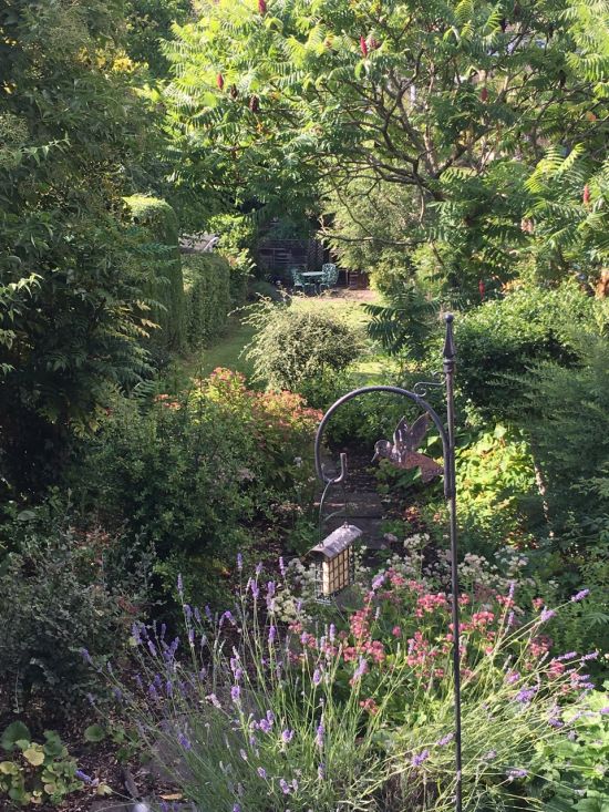Outside: The long back garden is laid to lawn with a paved patio area at the end furthest from the house. This space has garden furniture and is a nice spot for a peaceful morning pot of tea or a pre-dinner glass of wine. There is a stream at the bottom of the garden. The front of the house is set back slightly from the main road and bordered by flowering plants that add to the cottage's appeal and also provide privacy.