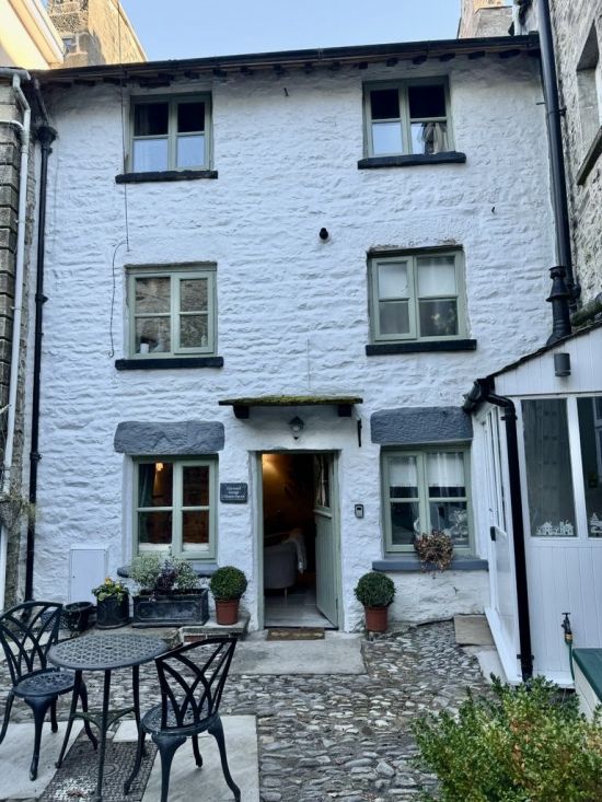 Courtyard Cottage is tucked away in a quiet, yet central location in the centre of Kirkby Lonsdale. The cosy lounge area features a wood burning stove, small dining area with kitchen on the same floor level, the specification includes a dishwasher, microwave oven, toaster & fridge. Upstairs there is a large bathroom with a bath & shower over. The spacious master bedroom features a large queen 5' wide double bed, bedside tables & large dressing table with comfy furniture. Bedroom two has twin bed. Table & chairs in the courtyard.