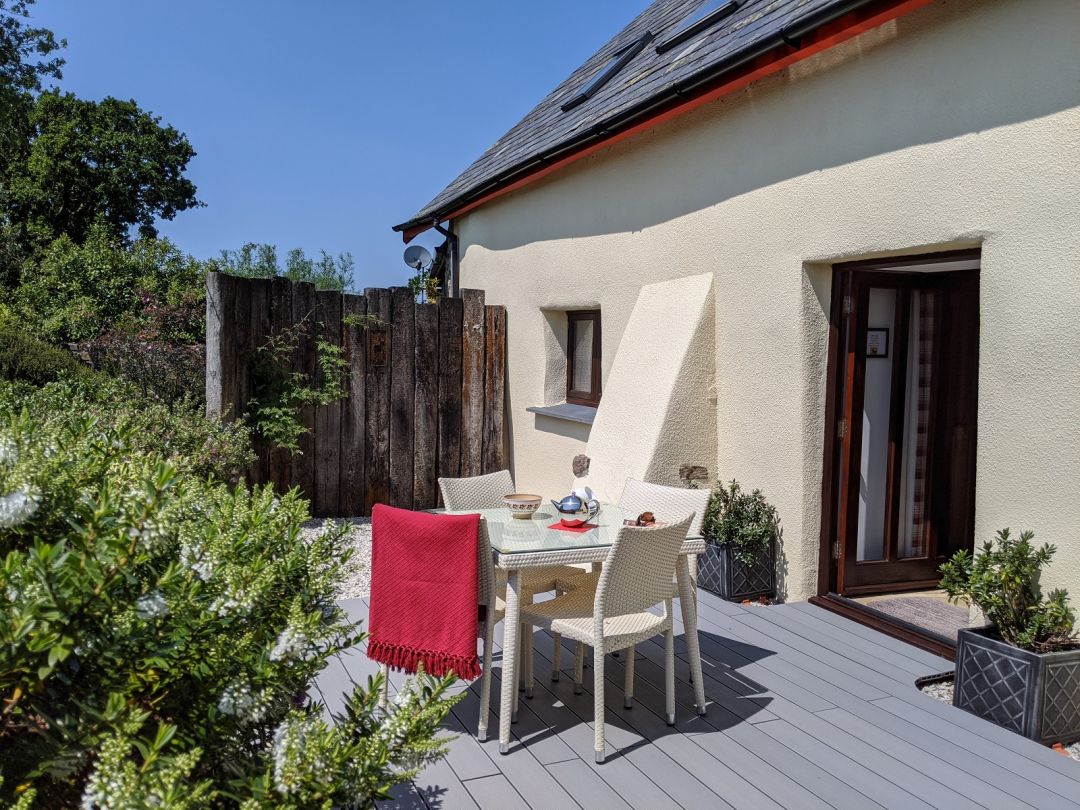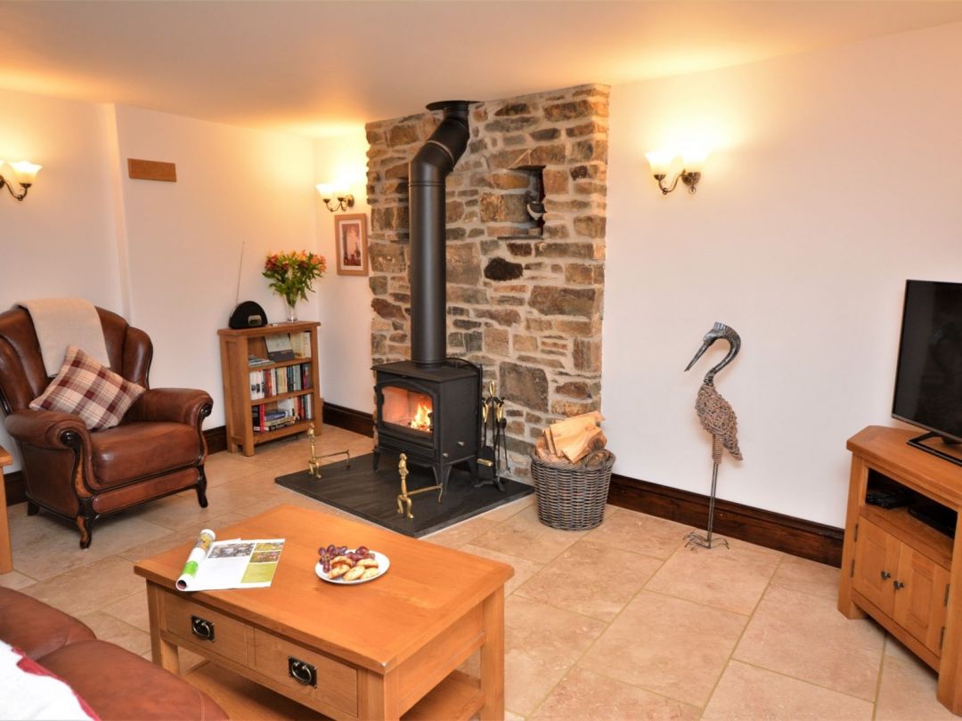 Outside: The enclosed garden enjoys gorgeous views of Dartmoor and over the countryside towards Bude on the North Coast. There is a patio with garden furniture and an area of lawn. Parking for two cars.