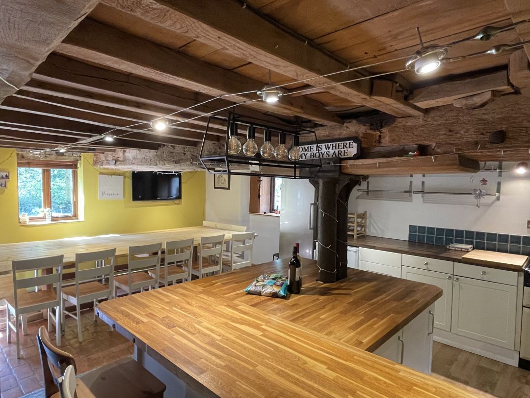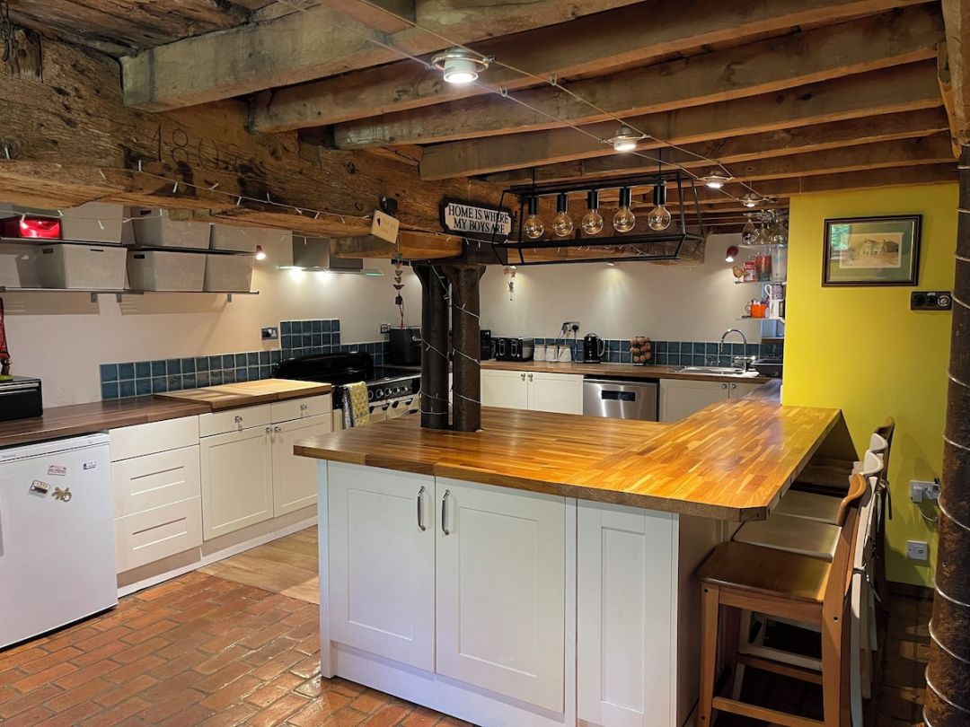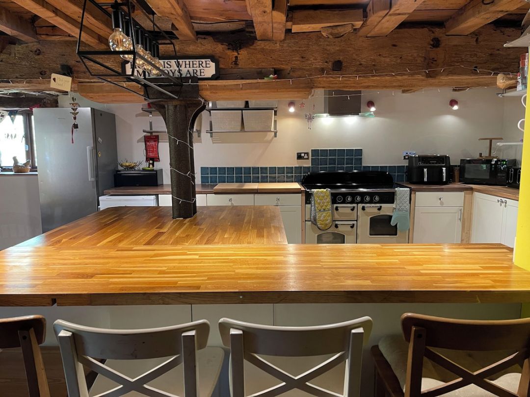 The kitchen is located on the ground floor with a large table and breakfast bar so you can all eat together.