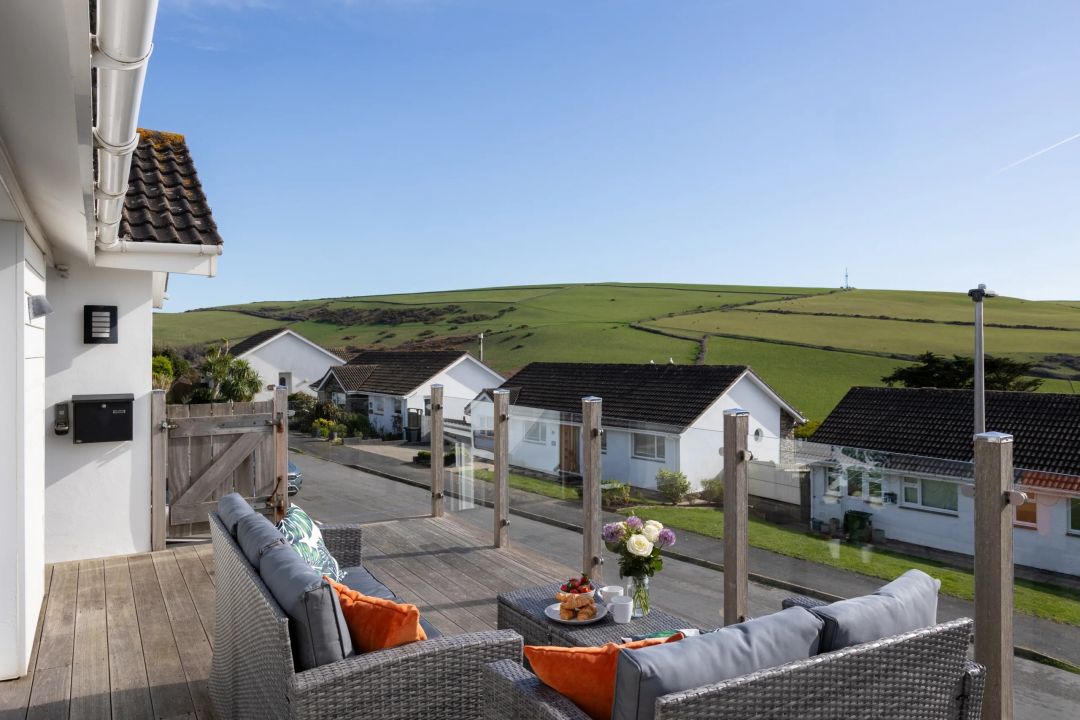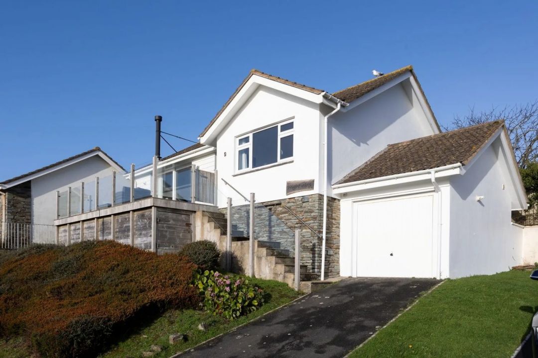 Outside: The front of the house has decking with seating and uninterrupted sea views. The rear garden is enclosed with lawn and a decked patio. Table, chairs and a gas BBQ make it easy to eat outside in warm weather. There's a storage shed with an extra fridge/freezer, and a driveway with space for two cars.