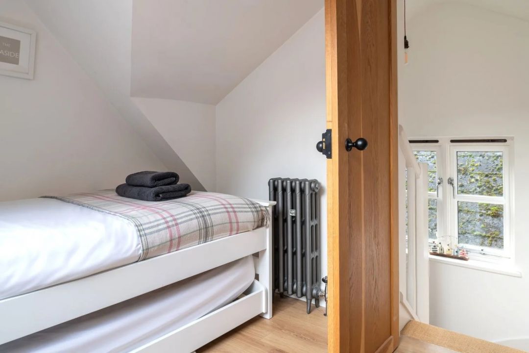 The front of the house has a waterside seating area that's especially lovely in the morning with a coffee, or later when the village quietens down. A rear courtyard is enclosed and backed by a rockface. Sheltered and simple, it is useful for keeping bikes and SUPs, and for peace and privacy.