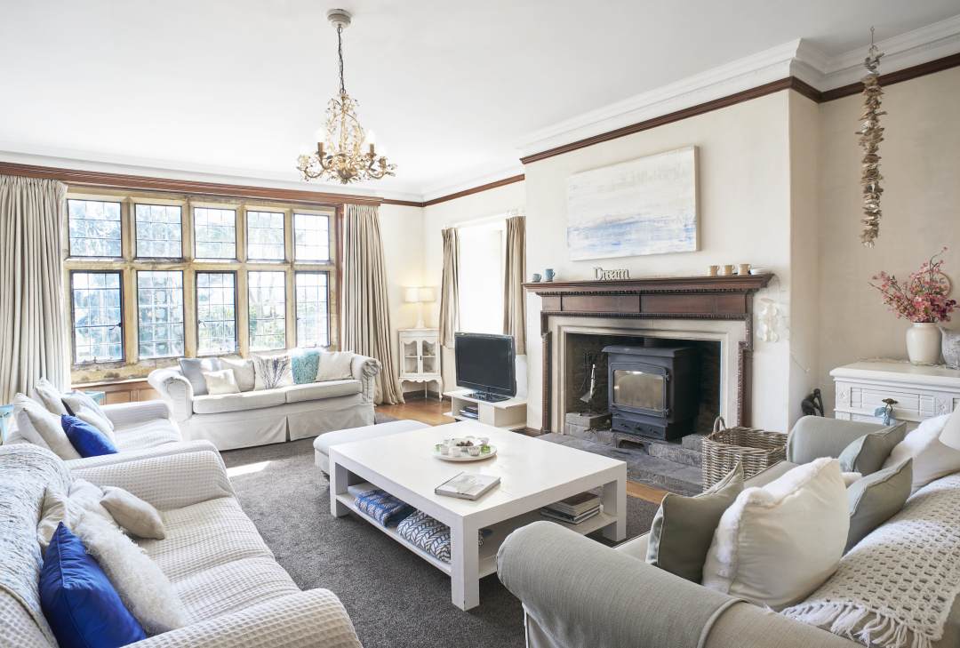 Interiors blend period charm with contemporary comfort, think soft coastal tones, generous living spaces, sea and countryside views, and thoughtful details throughout. Guests can enjoy a games room, private hot tub, and extensive grounds, with coastal paths and beaches just a short walk or drive away.