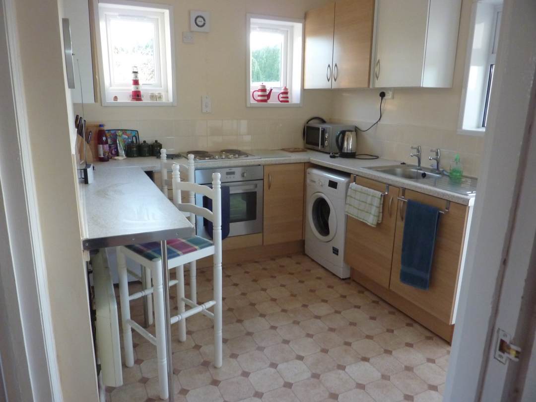 Your kitchen has a breakfast bar with 2 stools, oven with grill, hob, microwave, toaster and washing machine.