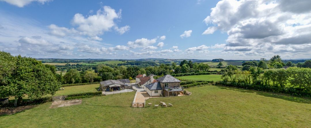 The spacious upper deck, enclosed by a sleek glass balustrade, is designed for both relaxation and alfresco dining. Accessible through the granary doors, it features comfortable sun loungers and outdoor dining facilities, perfect for soaking up the sun while admiring the stunning views of Dartmoor and our peaceful fields, where sheep, geese, and hens graze.