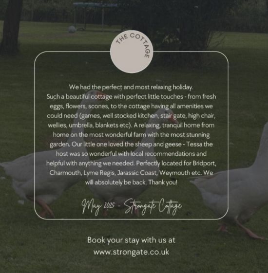 Strongate Cottage offers a rural peaceful escape to the Country and is located at the bottom of a long winding lane with no passing traffic. The Cottage is full of character and charm, and located in the village of Salway Ash, a 10 minute drive north of Bridport. Situated in a beautiful rural setting on our small working farm it's a peaceful tranquil space, with a pretty garden, visiting birds, and spring water.