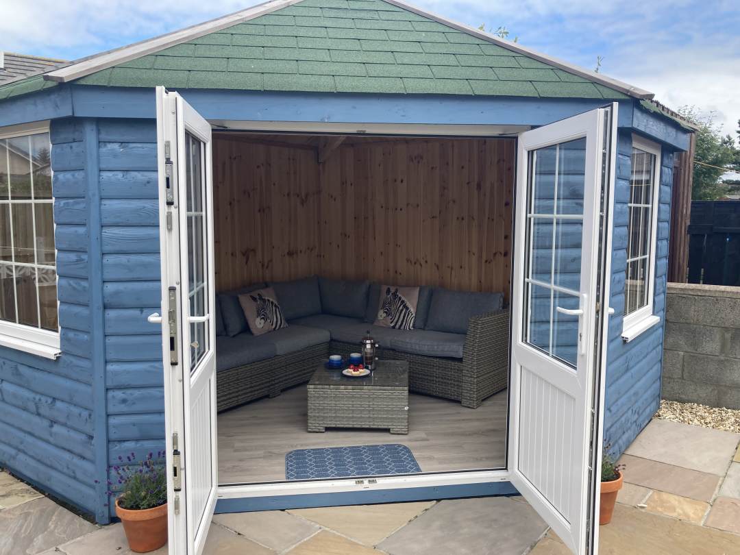 Outside: The cottage is on a quiet residential street with off-street parking. There is a small gravelled space out the front and a larger fully enclosed garden at the rear. There is also a garden room in rear garden.