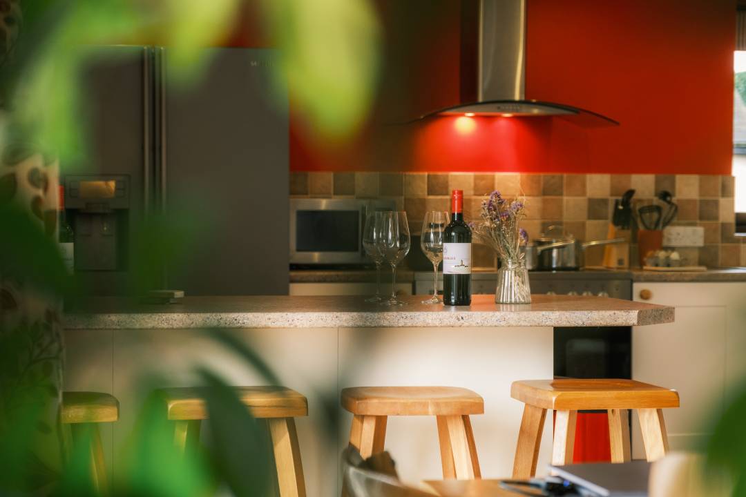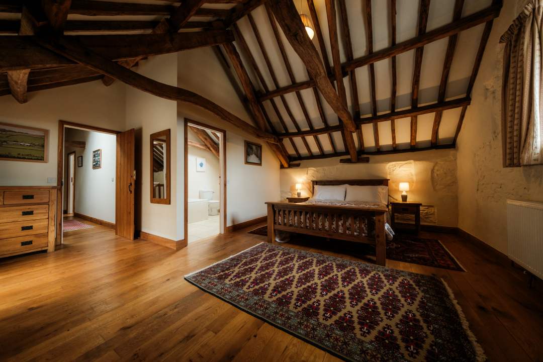 Inside, the ground floor features a spacious open-plan layout that connects the kitchen, dining, and living areas, with doors that open directly onto the patio, showcasing the breathtaking scenery. Upstairs, the bedrooms highlight the building’s rich history with original oak beams and timber vaulted ceilings, adding rustic elegance. Contemporary furnishings provide a modern touch, while each of the three bedrooms comes with an ensuite for added convenience, along with an extra toilet downstairs for practicality.