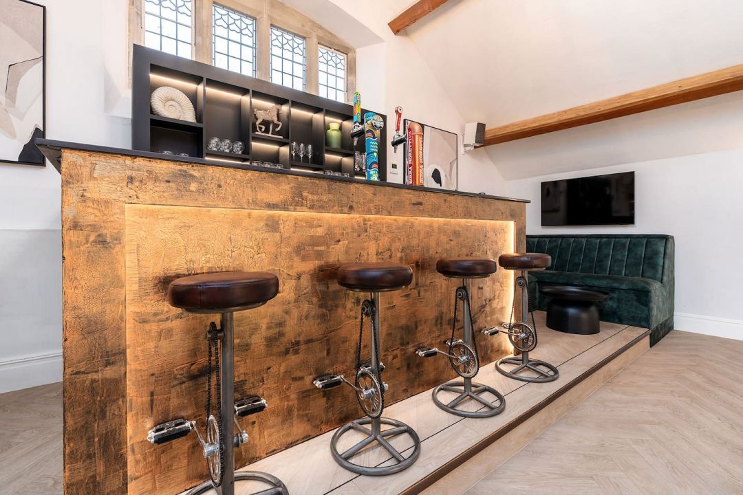 The Old School Manor is a substantial holiday home in Halkyn, North Wales, offering large group accommodation designed for shared experiences and sociable stays. Sleeping up to 24 guests across eight en-suite bedrooms, the house provides a flexible layout that works equally well for celebrations, corporate retreats and extended family gatherings. Formerly a school, the building has been reimagined as a high-end retreat, with generous communal spaces, strong soundproofing and facilities designed for groups who want to spend time together without feeling restricted. Features include a private cinema room, mezzanine bar, casino room, integrated sound system, hot tub and a large open-plan dining area with conference-ready screen, making it suitable for both leisure-focused stays and more structured events.