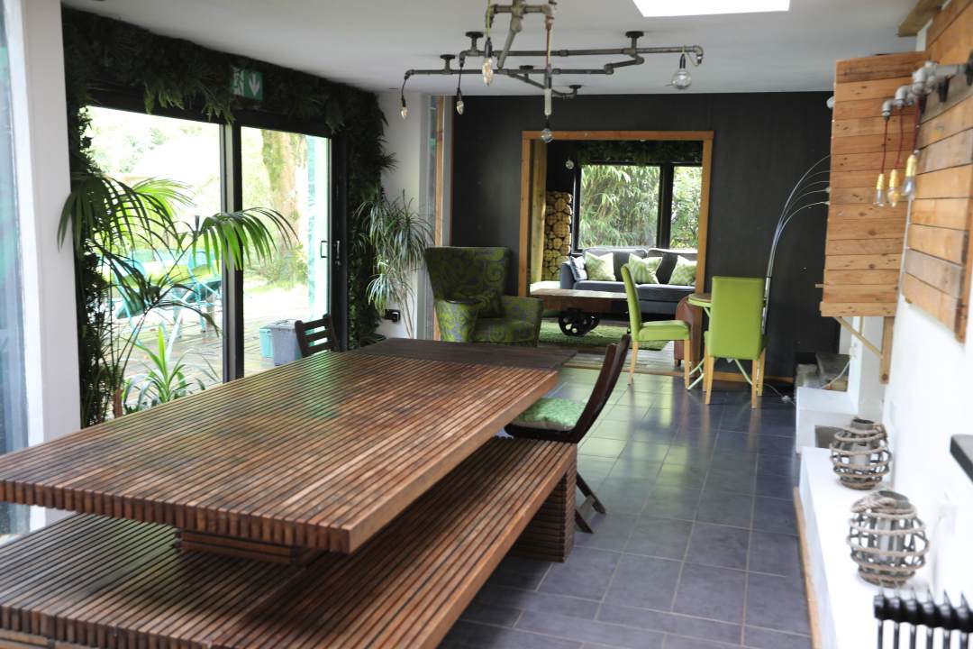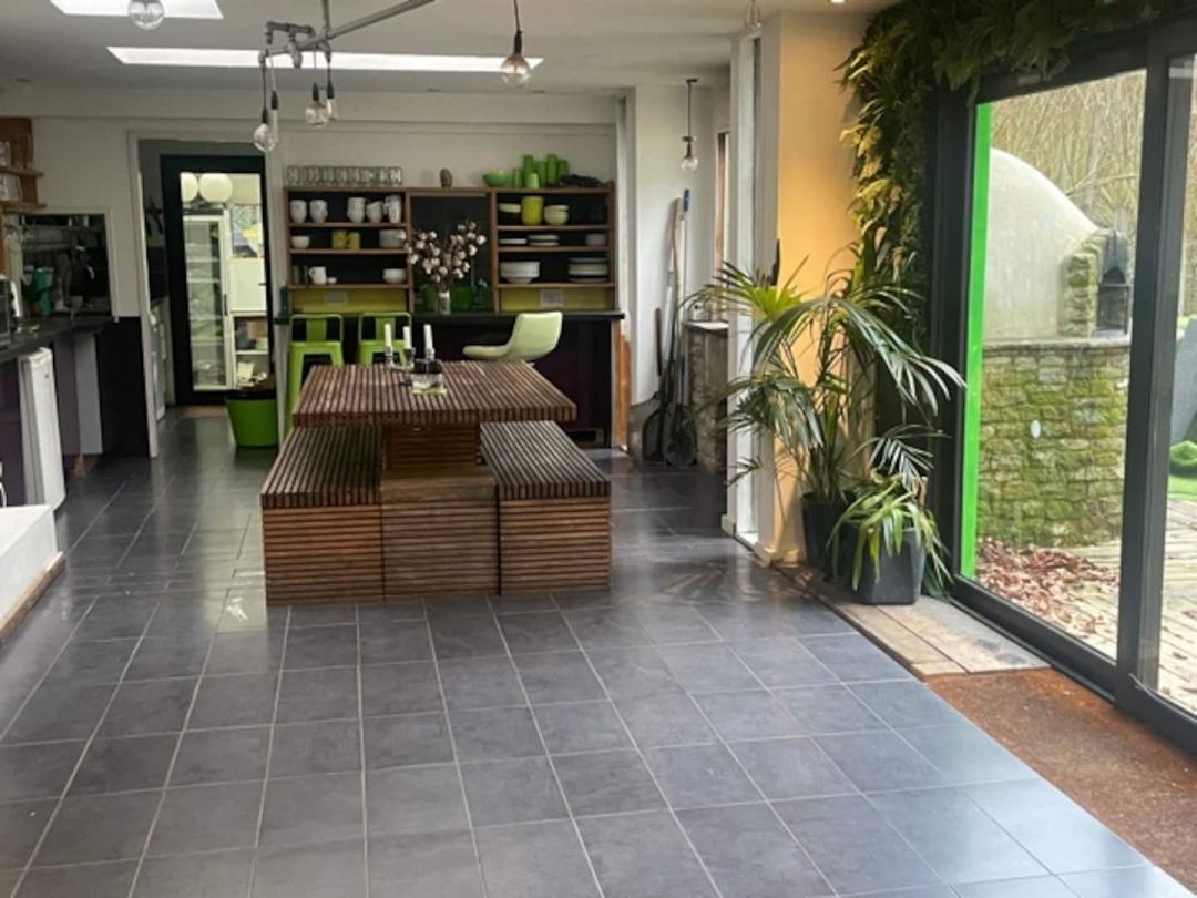 The Forest Retreat is one of those places you can’t quite believe exists until you’re there. Hidden away at the end of its own track and surrounded on all sides by the Royal Forest of Dean, it feels wonderfully private yet instantly welcoming. The house itself has been designed to echo the woods outside, with timber, greenery, and soft natural textures running throughout. With space to sleep 12 across five ensuite bedrooms, there’s plenty of space for family gatherings, walking weekends, or a group of friends who’d rather swap city noise for crackling fires and birdsong. The living spaces feel both homely and generous: two woodburners keep things snug, while the huge kitchen-diner, with its long tables, sets the scene for long suppers that stretch into the evening. Outside, kids can test their nerves on the zip wire or toast marshmallows around the sunken fire pit while grown-ups share a bottle under the stars.