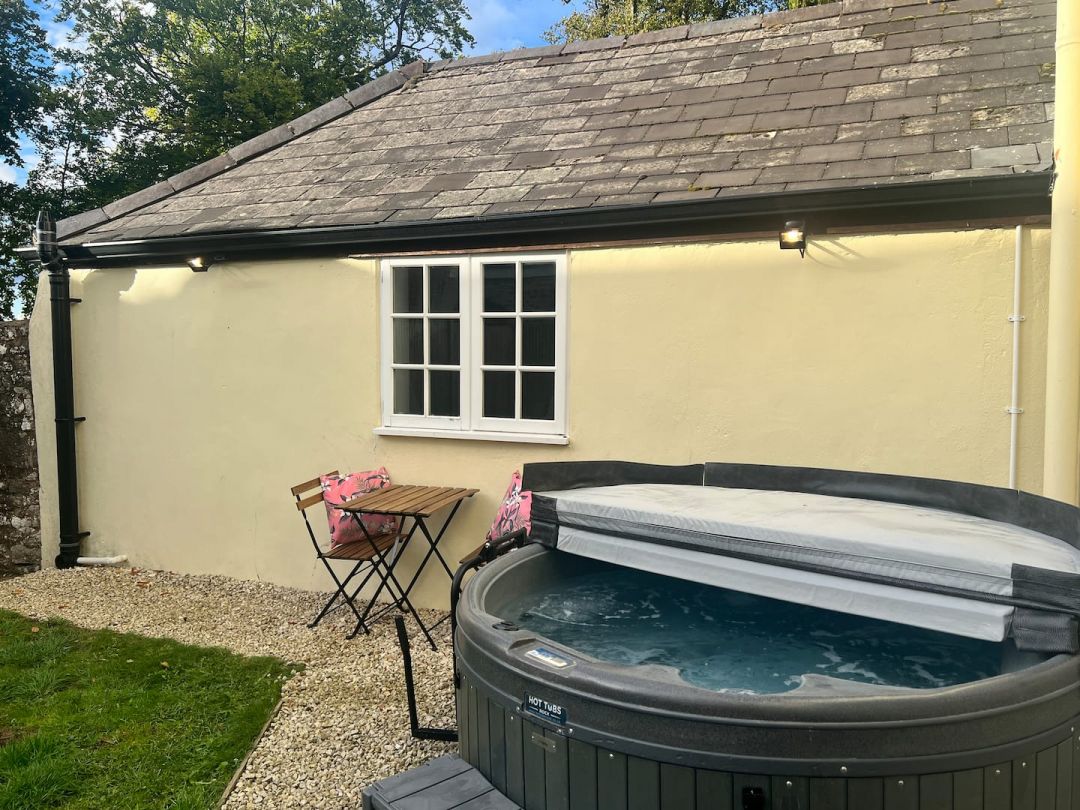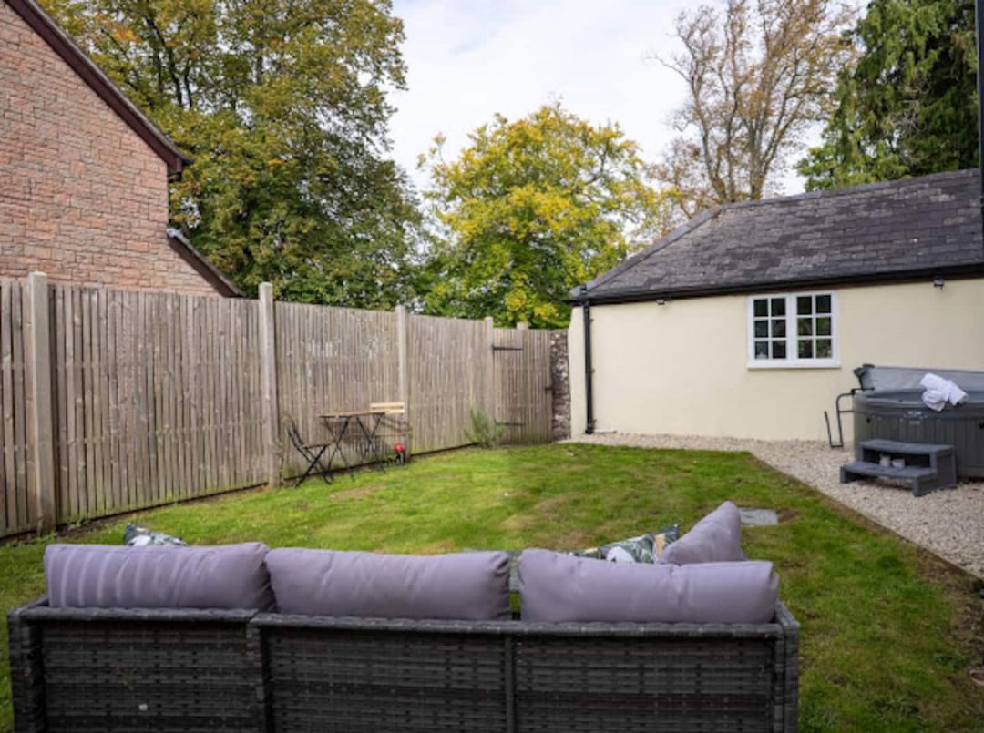 The enclosed garden is set up for unhurried time outdoors, with seating for morning coffee or evening drinks and soft lighting after dark. The private hot tub is for your exclusive use and offers a peaceful place to unwind after exploring the Forest of Dean or Wye Valley. On-site parking is available.