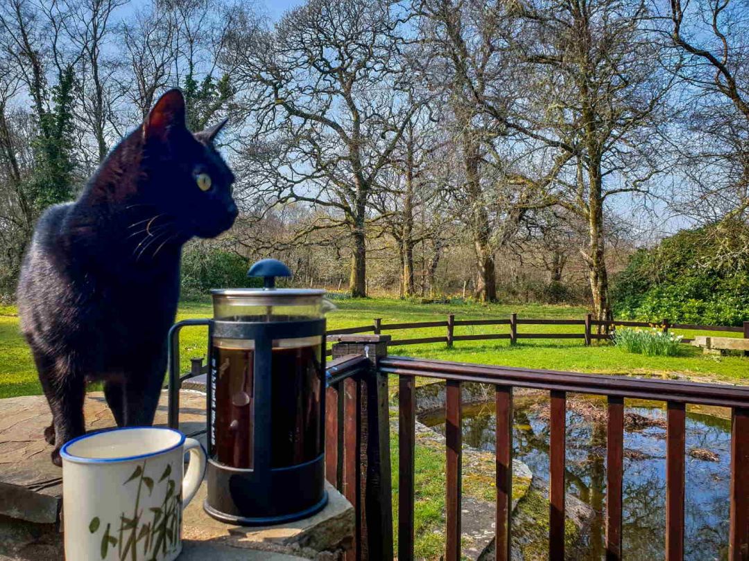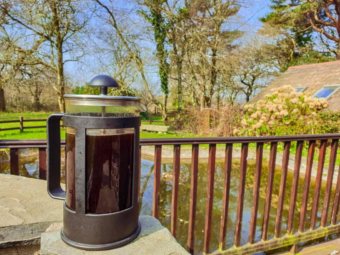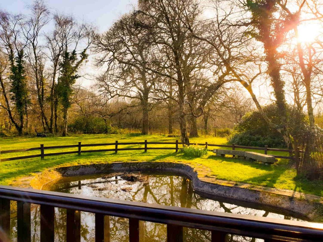 The garden has decking, a seating area with views over the (unfenced) wildlife pond, and space for outdoor meals or drinks. There is a stone BBQ nearby for easy use in warmer weather. There are acres of surrounding grounds with open grassy areas and plenty of room for dogs and children. A paddock next to the lodge is available by arrangement for guests bringing their horse.