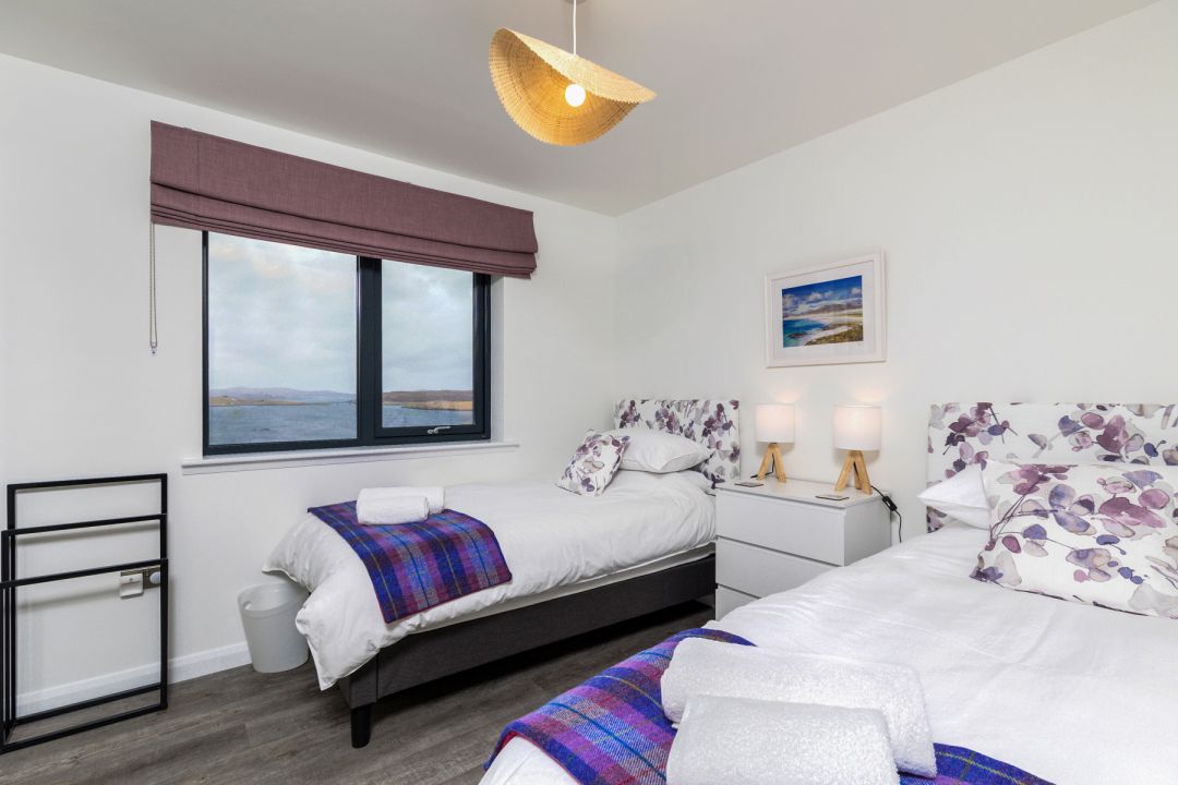 20A Kirkibost combines contemporary flair with traditional design to fit perfectly into its island setting. Efficient heating and huge picture windows ensure you can comfortably immerse yourself in the scenery in all seasons. Accommodation is on one level.