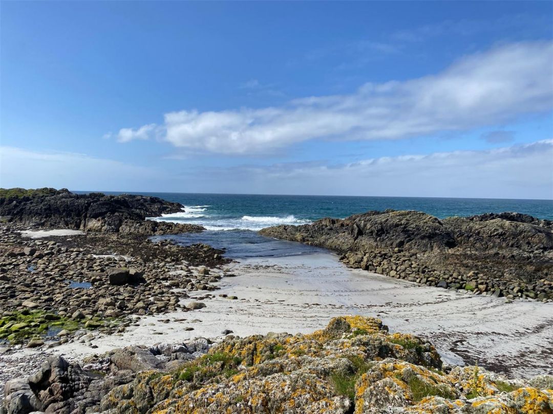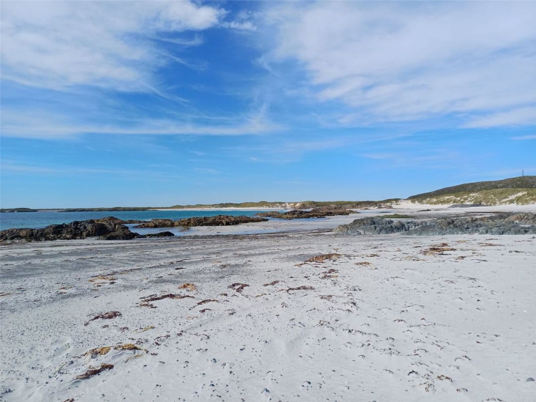 The house stands within open croftland, giving a sense of space without being isolated. There is room outdoors for morning coffee, organising beach gear, or watching the weather move across the island. Parking next to the house.