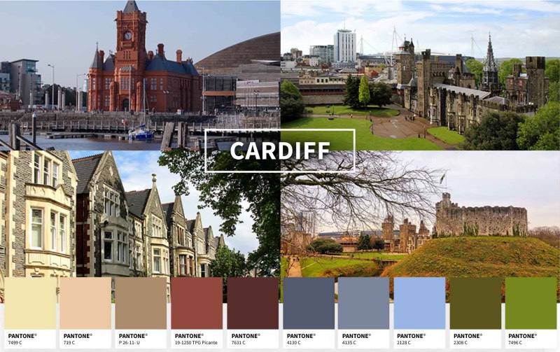 From the city’s traditional old-style houses in shade 7499 C to the historic castle shaded P 26-11-U, and the red-bricked Grade I listed Pierhead Building in Cardiff Bay shaded Pantone 19-1250 TPG Picante – the Welsh city of Cardiff boasts a wide array of different scenes. The many grassy areas surrounding the city’s most iconic sites bring in shades of 7496 C, while the city’s more modern architecture offers grey colours of 4130 C and 4135 C.