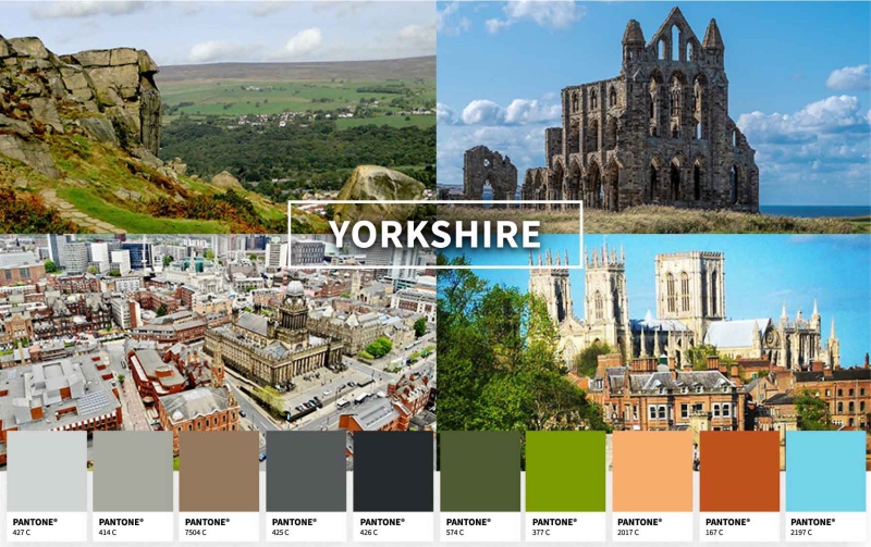 From the historic buildings of York, to the bustling cities of Leeds and Sheffield and the beauty of the Dales and the Moors – Yorkshire offers a diverse and breathtaking range of landscapes. In the countryside you can find greens of dark 574 C to very bright 377 C, while the architecture across the cities bring in greys of 427 C to browns of 7504 C and red 167 C. The iconic and spooky Whitby Abbey displays shades of Pantone’s 425 C and 426 C.