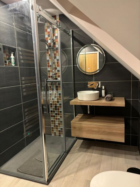 * Ceiling fan in sleeping area, ceramic florring and underfloor heating, Hive thermostat