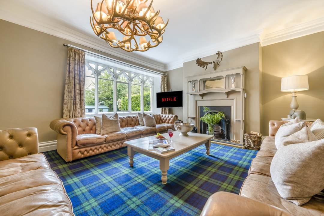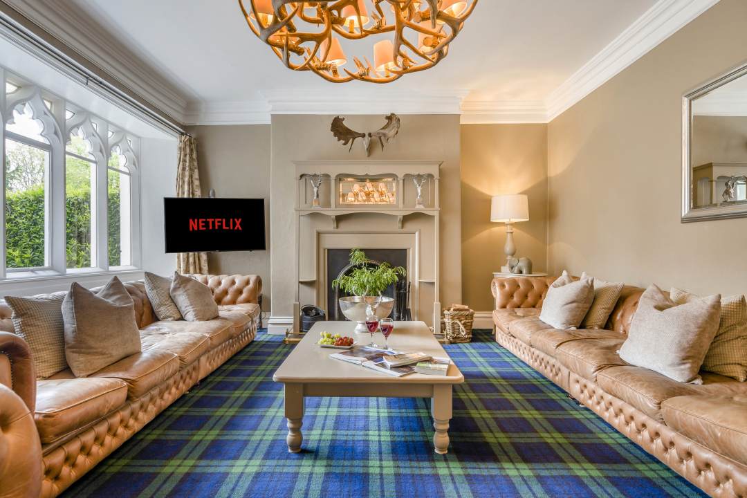 Bannerrigg’s lounge has huge Chesterfield sofa’s where your whole can group can cosy up together around an open fire. The room also equipped with a large Smart TV.
