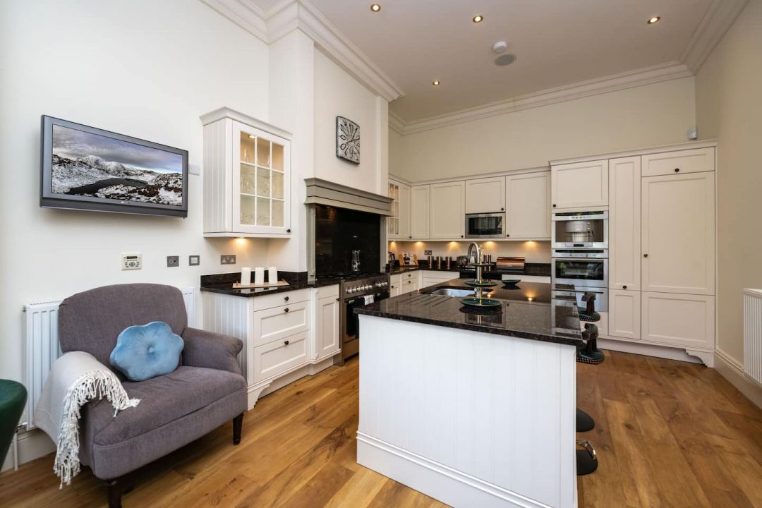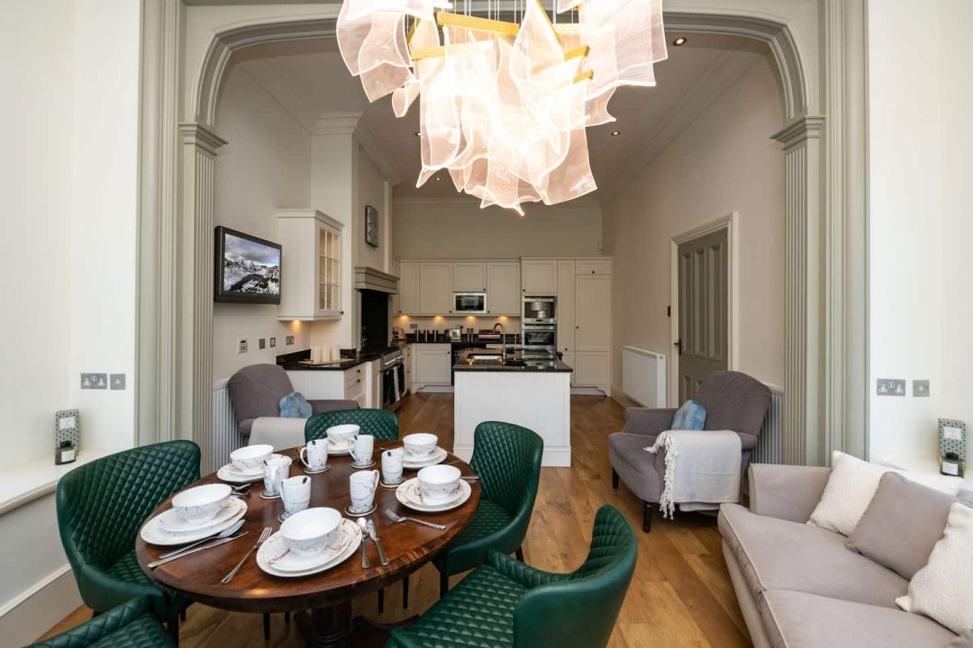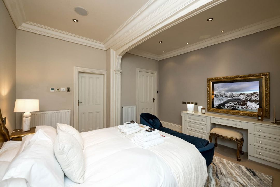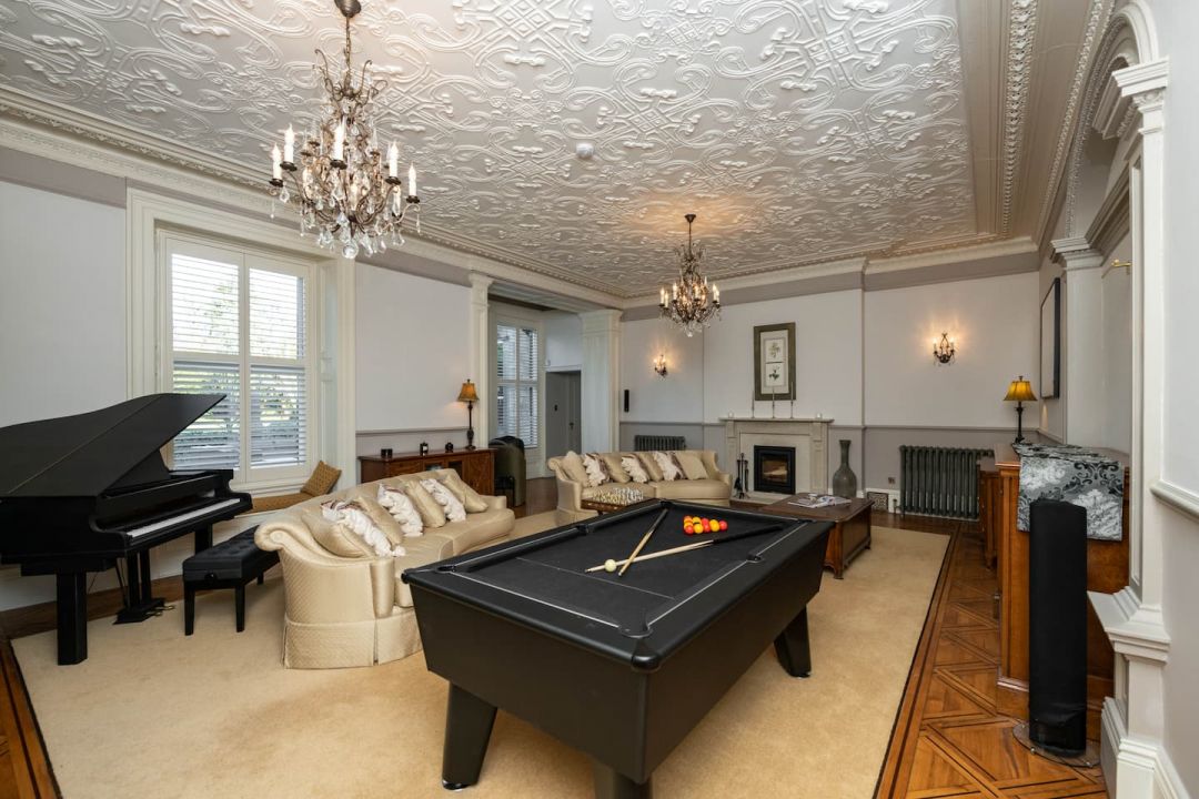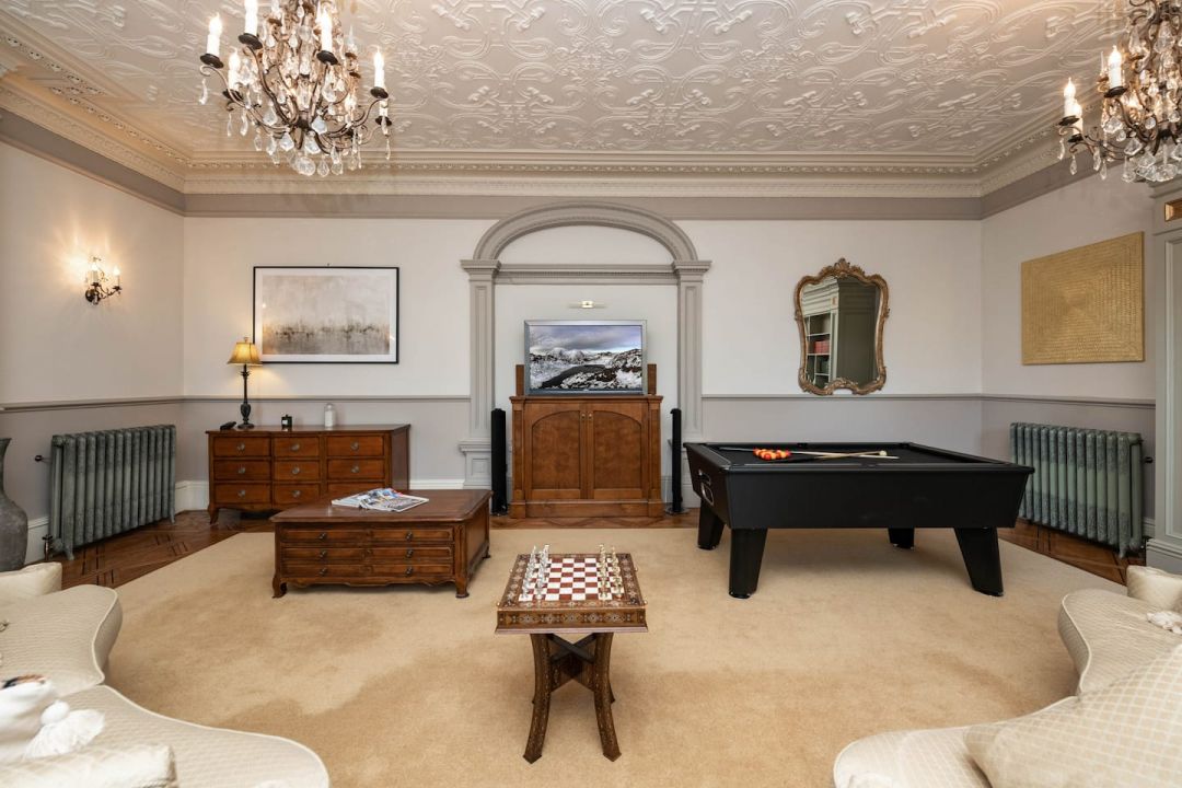 Royal Garden Suite has a sense of quiet elegance that’s hard to find. Sitting within the Hermitage Estate, it gives you space to switch off without feeling cut off from life altogether. The house itself is part of a handsome period building but the interiors are fresh and contemporary. Two generously sized bedrooms, both with their own bathrooms, make it easy for friends or family to share without compromise. The living space is bright and open, and the kitchen has everything you need if you enjoy cooking while you’re away. In the evenings, you can linger over a drink in the games room or sit at the piano and play a tune before stepping outside to the hot tub. With the river close by and gardens wrapping around the terrace, this is a place made for slow mornings and late nights under the stars.