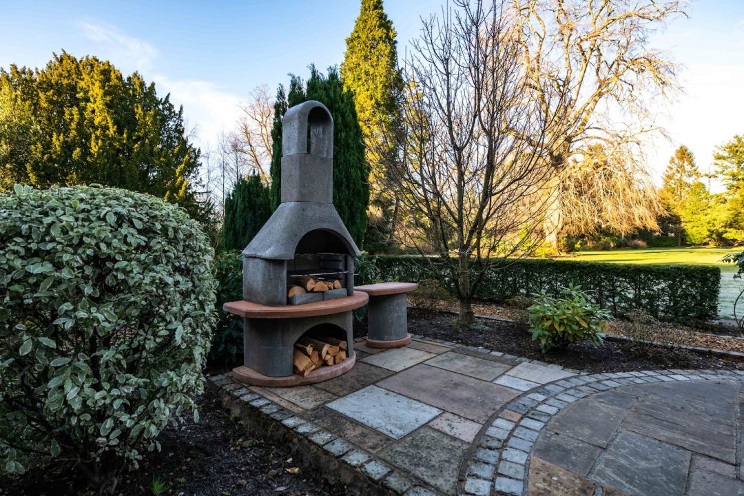 Outside: Step out into a private garden where there’s room to eat, sit back, and watch the evening settle in. The paved terrace holds the hot tub and outdoor furniture, while a fire pit gives you a reason to stay out long after sunset. Two parking spaces are set aside for guests, and you’re free to wander the paths around the estate whenever you fancy a stroll.