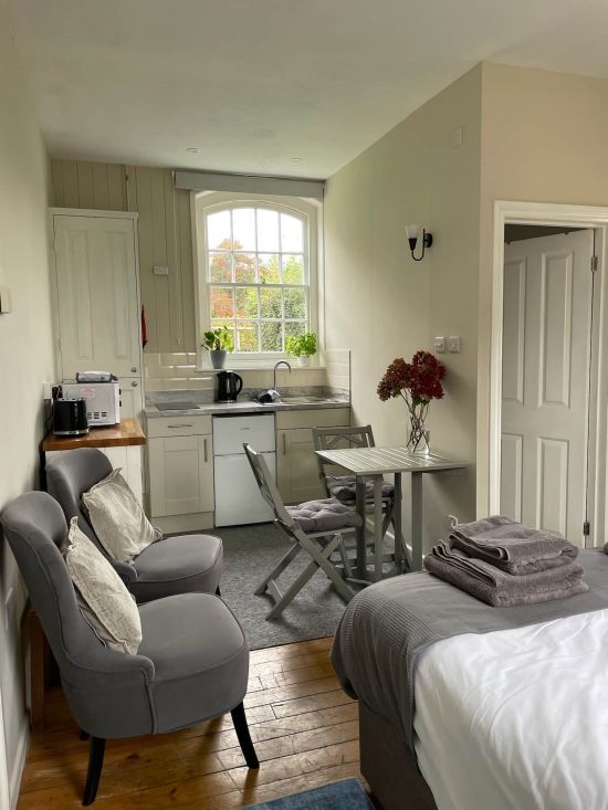 Chapel End is a charming studio hideaway just outside the peaceful New Forest village of Sway, perfect for couples craving a peaceful and romantic break. With its own private entrance at the end of a beautifully converted chapel, it offers a cosy retreat with a king-size bed, comfy armchairs, a small dining area, and a compact but well-equipped kitchenette. There's a private shower room, and outside, a secluded courtyard garden with table and chairs—ideal for enjoying morning coffee or evening drinks. Sway village is just a short stroll away, with a shop, pharmacy, and the much-loved Hare and Hounds pub, as well as two other great places to eat and drink. Chapel End is dog-friendly, and many guests praise its peaceful atmosphere, thoughtful layout and warm welcome—often returning again for another escape.