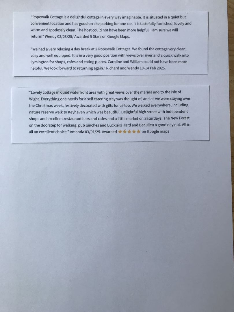 Lymington has much to offer visitors with plenty of restaurants, pubs, interesting shops and boutiques, along with the historic High Street with its bustling Saturday weekly market - all just a ten minute walk from Ropewalk Cottage. You can also catch a ferry from Lymington to the Isle of Wight for a day trip.