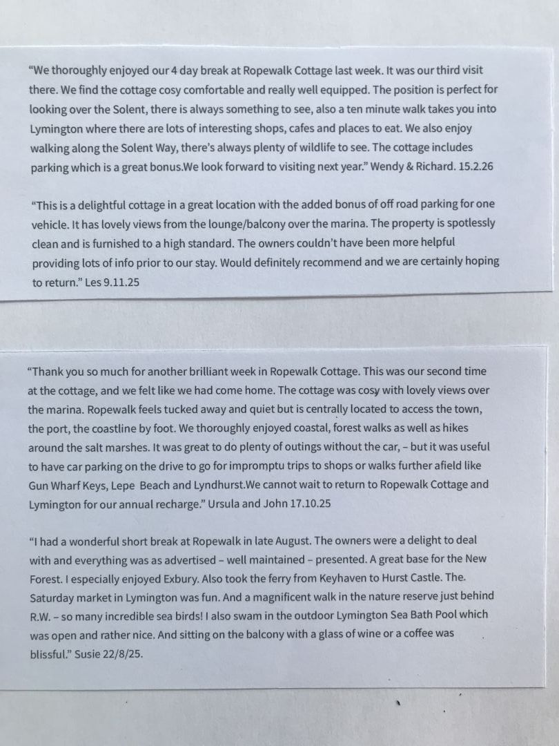 Sitting so close to the water, there are plenty of vibrant nautical views from the balcony, with with the Solent and Isle of Wight on the horizon and small boats being launched from the slipway beside Ropewalk Cottage and larger vessels cruising up and down the river. There are fantastic walks that can be enjoyed directly from the cottage taking you around the sea wall in the Keyhaven nature reserve, or alternatively, relax on the balcony and take in the ever changing scene around you. Children over 6 years old welcome. Dogs not allowed.