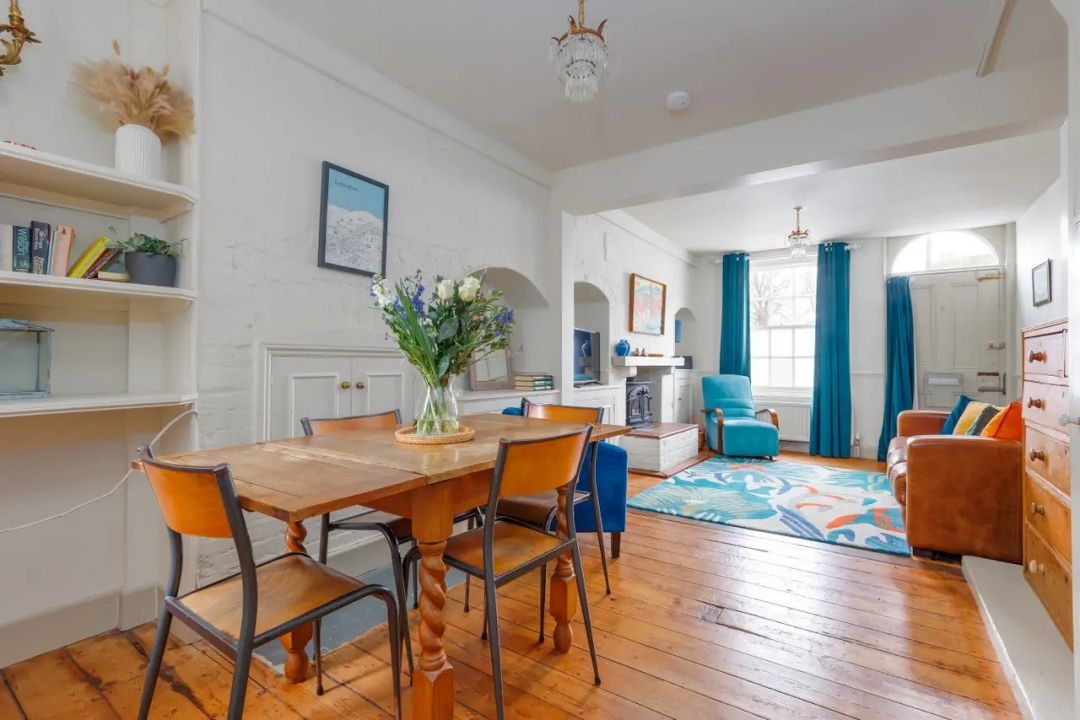The Blue House is a charming feature of historic Southampton Road in Lymington, its unusual blue-brick façade immediately catching the eye amid the town's traditional architecture. Built in the 1840s, this attractive three-bedroom holiday cottage in Lymington combines characterful period details with thoughtful modern touches to create a welcoming base for exploring the New Forest and south coast. Inside, wooden floors, generous natural light and carefully chosen furnishings create relaxed living spaces that are both comfortable and practical. The cosy lounge invites guests to relax after a day out, while the well-equipped kitchen leads directly to a secluded courtyard garden - a peaceful place for morning coffee or an evening meal outdoors. Set across three floors, the house comfortably sleeps up to six guests, making it well-suited to families, couples travelling together, or friends gathering for a seaside break. Cyclists and outdoor enthusiasts also appreciate the secure storage for bikes and equipment.