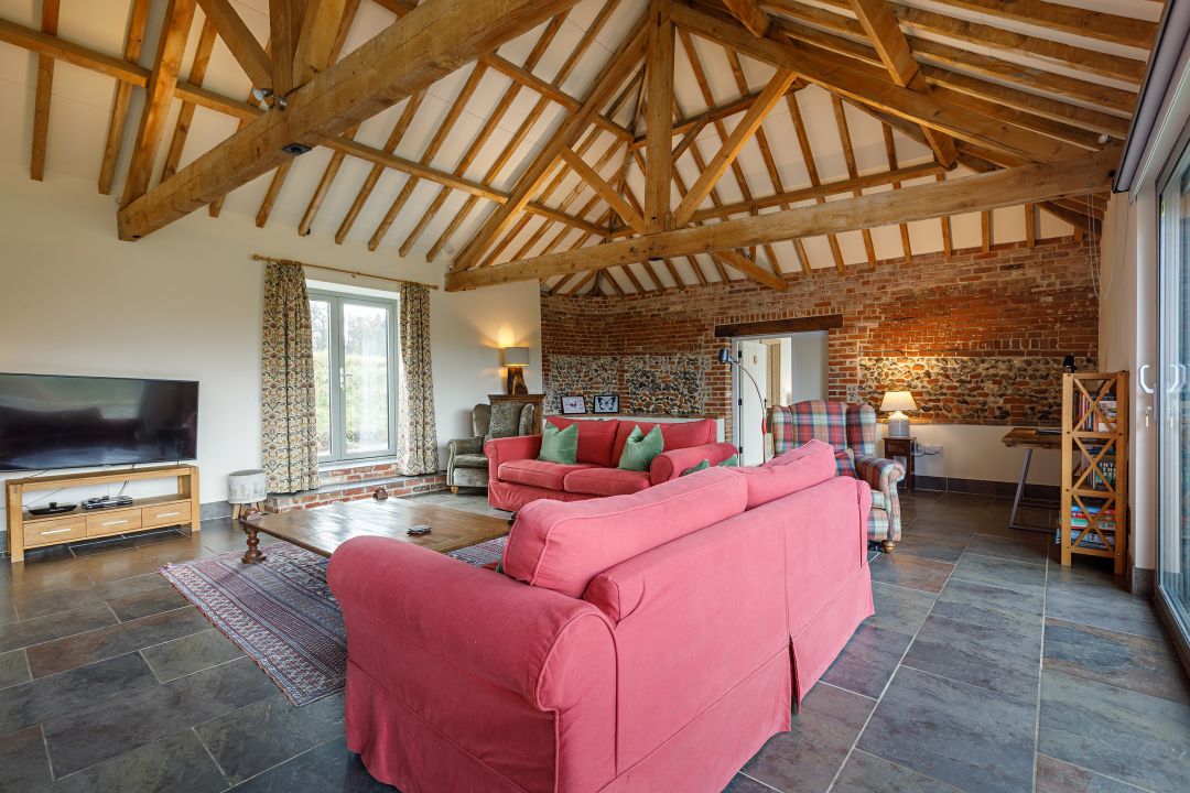 Bayses Barn is set completely alone down a green lane with the most stunning views across a meadow and pond towards the Glaven valley. Once an old lambing shed and yard, the development of this barn into a self-catering holiday cottage was all about the location and the view. It’s great for families or couples, but with all of the bedrooms having an ensuite bathroom, is also ideal for friends. You will struggle to find a more idyllic location. There are lovely footpaths and cycling routes, all accessible from the door and beaches and market towns a short drive away.
