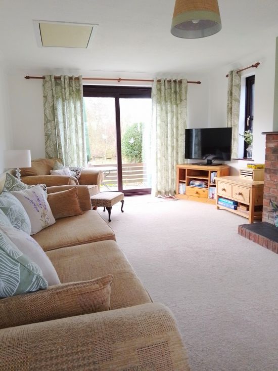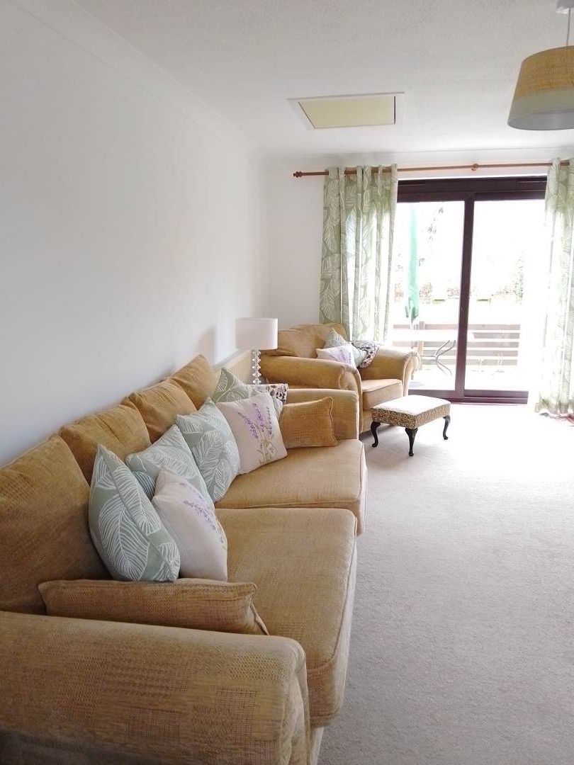 Lounge - Large triple aspect, spacious and light lounge, with a comfortable 4 seater sofa, 2 armchairs, Smart TV, quality board games, chess sets, reading and reference books. Patio Doors leading to the large enclosed terrace that overlooks the communal garden and lake.