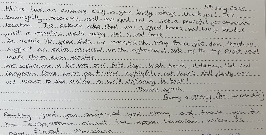 The property offers comfortable accommodation for to up to five people and two dogs. A sixth roll-out bed is available by prior request. Please note: all three bedrooms are accessed by a traditional but steep 'Norfolk winder' staircase, making this property unsuitable for people with significant mobility issues.