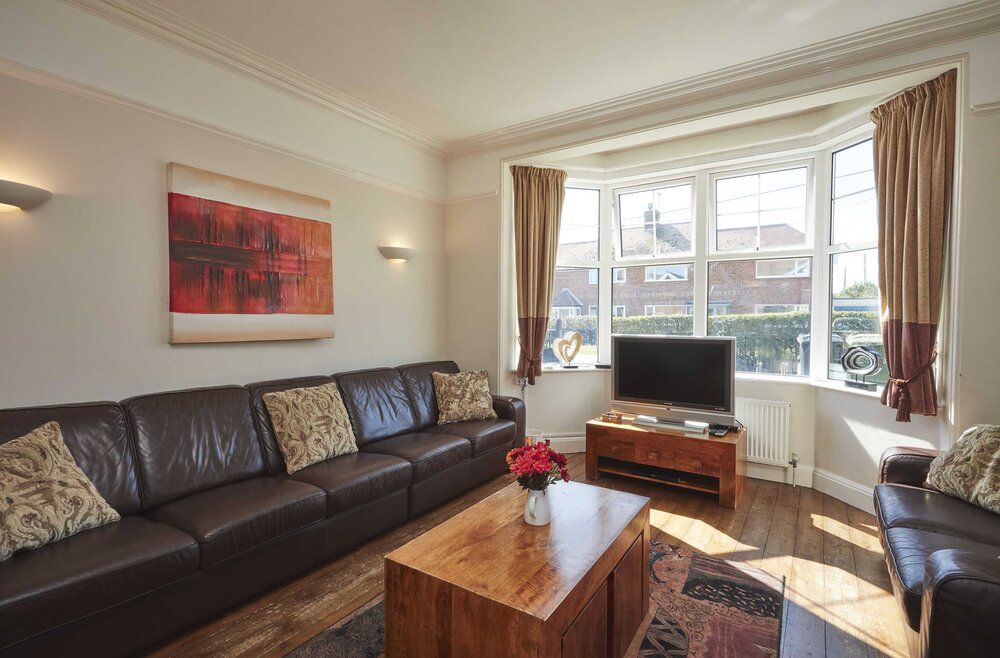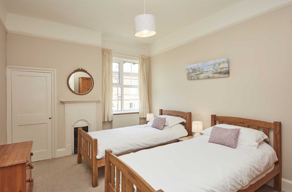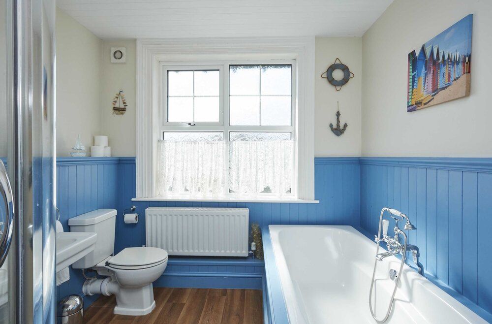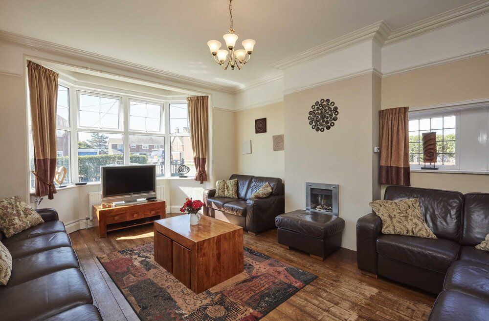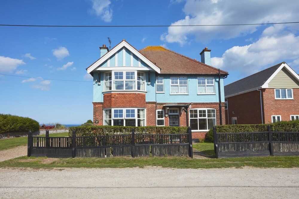 The Whim is a delightful sky-blue holiday home in a cliff-top location in Mundesley with jaw-dropping views. It is big enough to accommodate 14 people in seven spacious bedrooms, so it is ideal for extended families and friends, yet it still feels welcoming and homely. The house retains period features like high ceilings and decorative fireplaces and has been updated with a heated swimming pool and a sauna for the ultimate relaxed holiday. Guests love the peaceful location slightly outside the village centre and within walking distance of the beach, the Ship Inn pub, and two small shops well-stocked with essentials to make your self-catering stay easy.