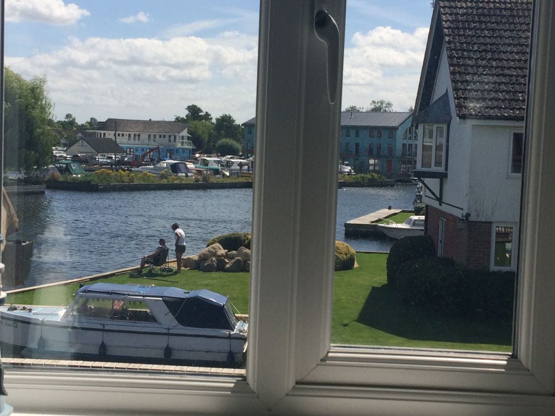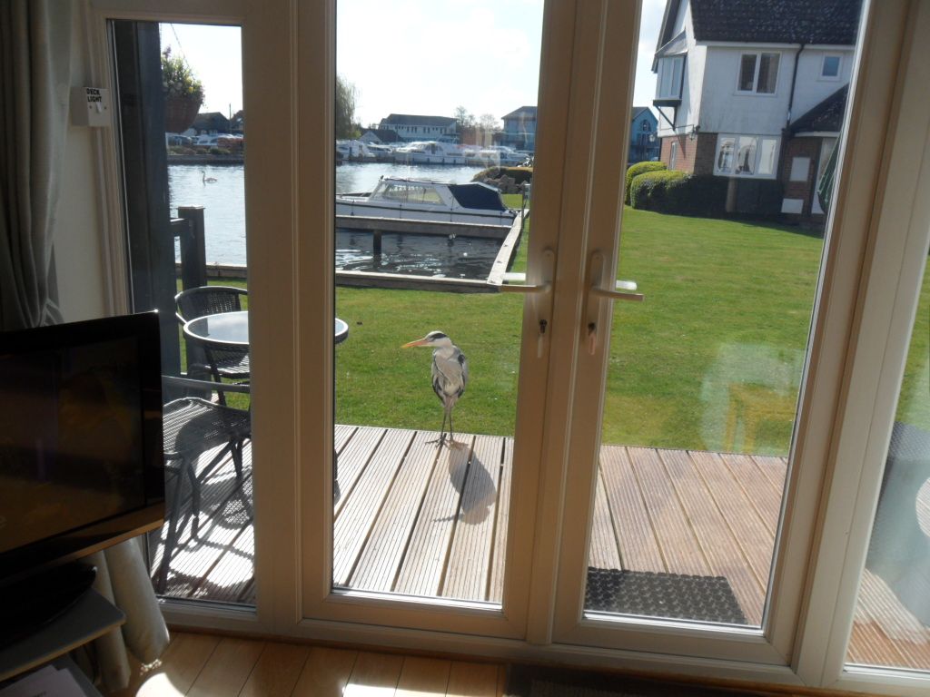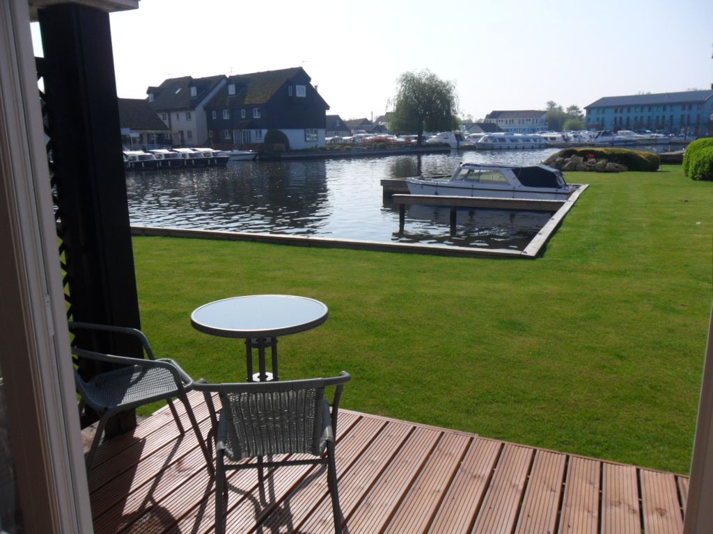 Outside: The patio area is south facing and has direct sunlight from early morning to early evening and overlooks the lawned area and the river Bure - the ideal setting for morning coffee and early evening drinks. The patio area has a table and chairs and is located outside the living room. Guests also have use of the communal lawns with river frontage providing plenty of space to relax and watch the antics on the water. Free private off-road parking available for one car behind an electronic barrier. There is a free small boat mooring close by for any bookings during the winter season.