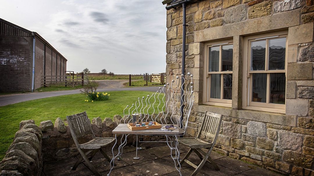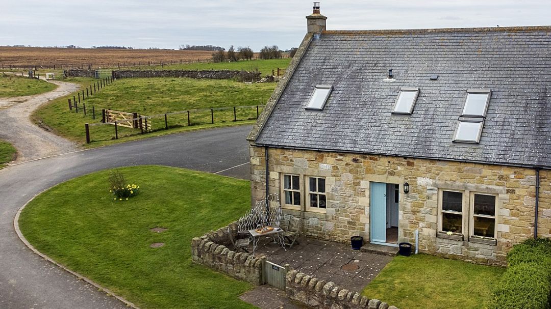 Emblestone View is a two-bedroom holiday cottage just outside Embleton, set within a small group of converted farm buildings a short walk from the beach. It sleeps four and looks out over open fields towards the sea, with the shoreline only a couple of minutes away on foot. Step outside and you're straight onto the Coast and Castles No 1 cycle route, with Dunstanburgh Castle rising up along the headland. It's a striking view, and one that changes with the light and weather. Inside, the cottage keeps things simple and comfortable rather than overly styled. There's a log burner for cooler evenings, a couple of places to sit with a book, and space to properly switch off after being out all day. The Dunstanburgh Castle Hotel is good for food if you'd rather not cook.