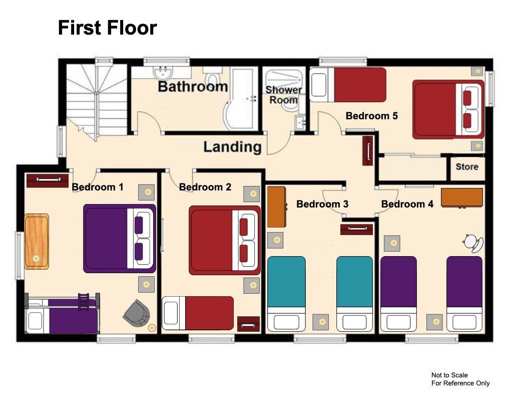 The cottage comfortably accommodates up to 16 guests in five upstairs bedrooms and one downstairs snug off the living area with double full-sized double sofa-bed. There are gardens to the front and rear with BBQ and outside garden furniture and garden games including swingball and garden jenga.