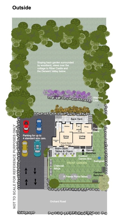 Outside: Crow Pie Cottage has mature gardens to the front and rear, with several seating areas so that guests can relax and enjoy the views over the Derwent Valley towards Riber Castle. There is also two private acres of woodland at the back of the cottage for guests to explore including parking for 3-4 cars next to the house with more free parking a short walk away.