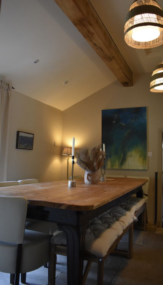 Escape to Emily Barn, a generously sized stone barn full of rustic character, located in the peaceful village of Carsington in the heart of the Derbyshire Dales. With oak beams, flagstone floors, and underfloor heating powered by an eco-friendly ground source heat pump, it’s a warm and welcoming base for big family getaways, celebrations, or group retreats.