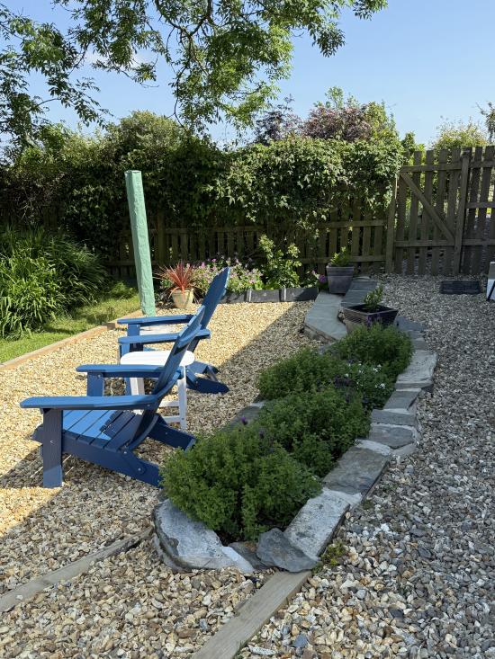 The cottage has its own parking area with private access and enclosed gardens to the front and rear with countryside views, including an outside eating area. It's lovely to sit outside in the morning sun with a cup of coffee or tea, and come evening, head to the back garden with a glass of wine as the sun dips behind the hill, enjoying the surrounding countryside. You'll find the shed equipped with buckets, spades, games, a barbecue, and the famous windbreak—an essential for the British seaside. There’s good access to public footpaths from the cottage, and a map on the hall wall shows where they all are.
