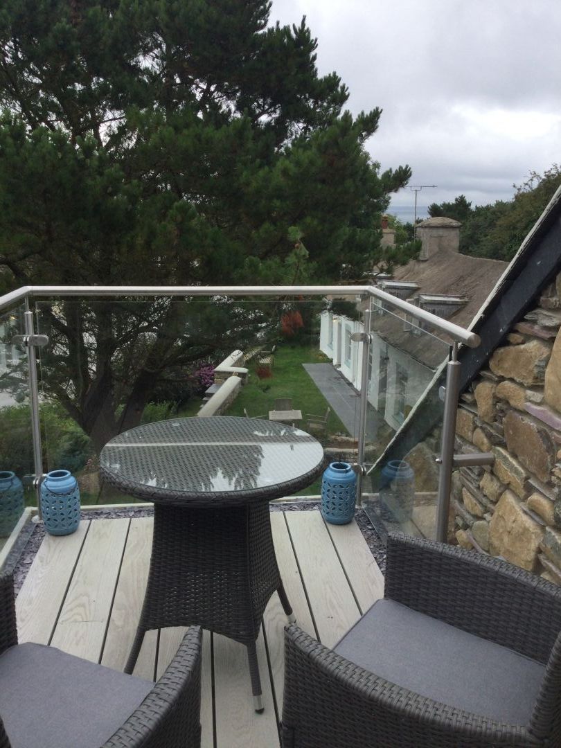 Outside: The cottage has a first-floor balcony with a glass balustrade to make it safe without blocking the stunning views. A separate building has shared laundry facilities. There is seating up there and as well as on the ground floor outside the cottage. Although the cottage has parking for one car, less experienced drivers or those with big vehicles may prefer to use alternate parking a three-minute walk away.