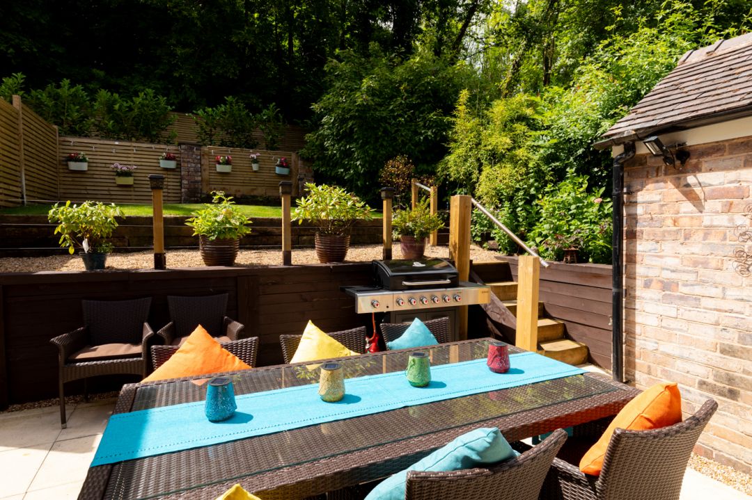 The pretty front garden overlooks the River Severn and the large patio and rear terraced garden is perfect for some alfrescro dining, enchanced by the bbq oven provided for guests use. The rear garden is directly accessed from the kitchen and living room patio doors.