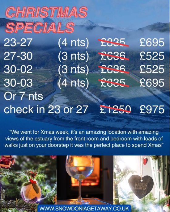 | Tue, 23 Dec 2025 for 4 nights, £600 Save £235. Or 3 nights (23 or 24 check in) = £500 |