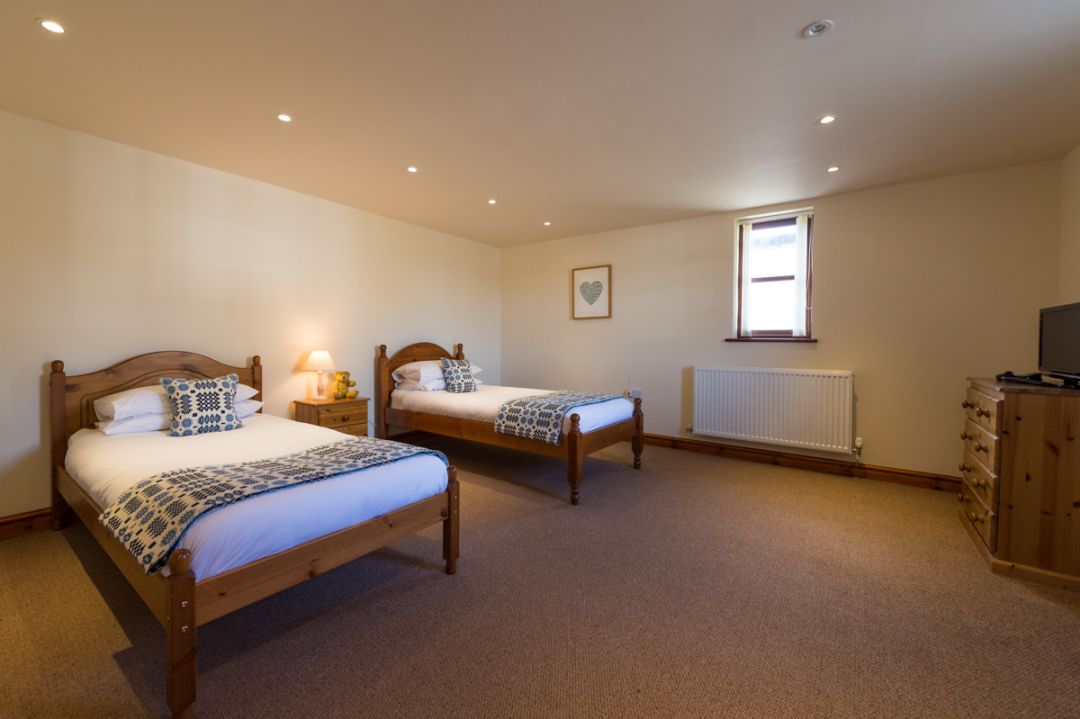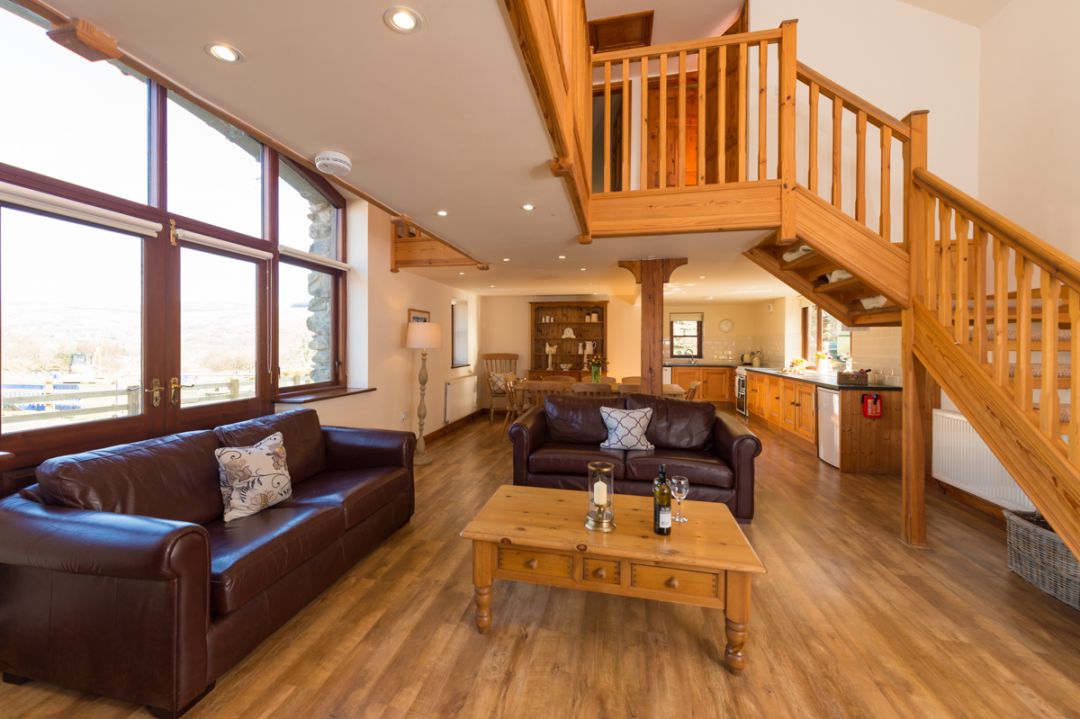 Hen Ysgubor boasts an open plan style living area down stairs comprising of a kitchen, dining and living area with a cosy wood-burner along with a seperate twin bedroom, shower room and utitility room. Upstairs offers a further 3 bedrooms and a family bathroom.