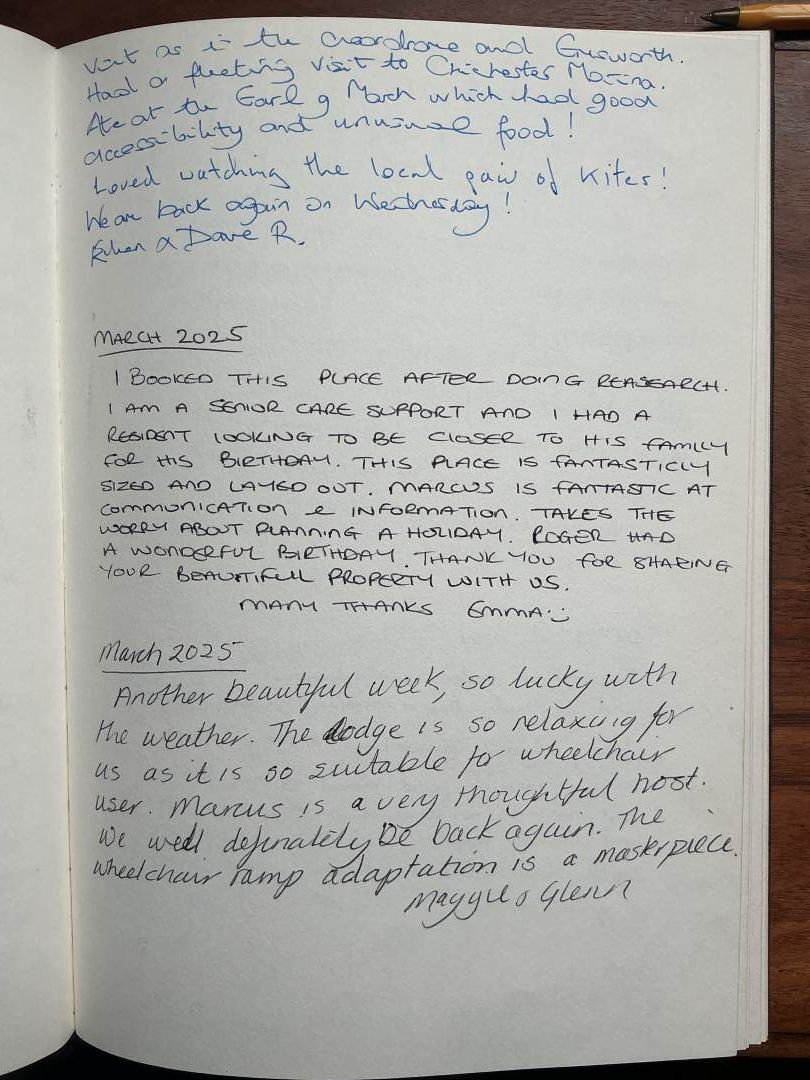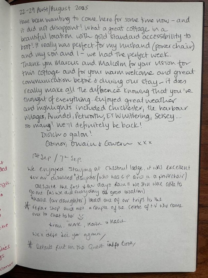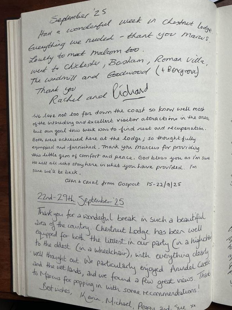 Chestnut Lodge is a beautiful timber holiday cottage in the Sussex village of Halnaker. It has a lovely, leafy outlook, and the South Downs National Park is just over the garden fence. The cottage sleeps four people in two bedrooms, with a flexible layout to suit the needs of couples, families or friends. It has been designed with wide doorways, level flooring throughout, and a wheelchair accessible bathroom, and is sited in its own grounds, with parking space for four cars and an EV charger. It is well-equipped for self-catering, and essentials and treats are readily accessible in the well-stocked village shop and at an organic farm shop. You're also within a short strolling distance of the popular village pub, The Anglesey Arms, with it’s selection of ales, and reputation for good food.